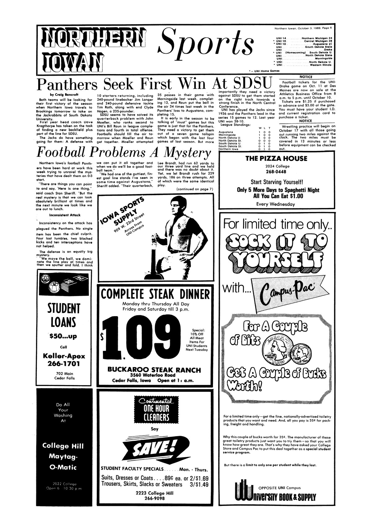 | Panthers seek first win at SDSU | UNI will play South Dakota State University tomorrow. |