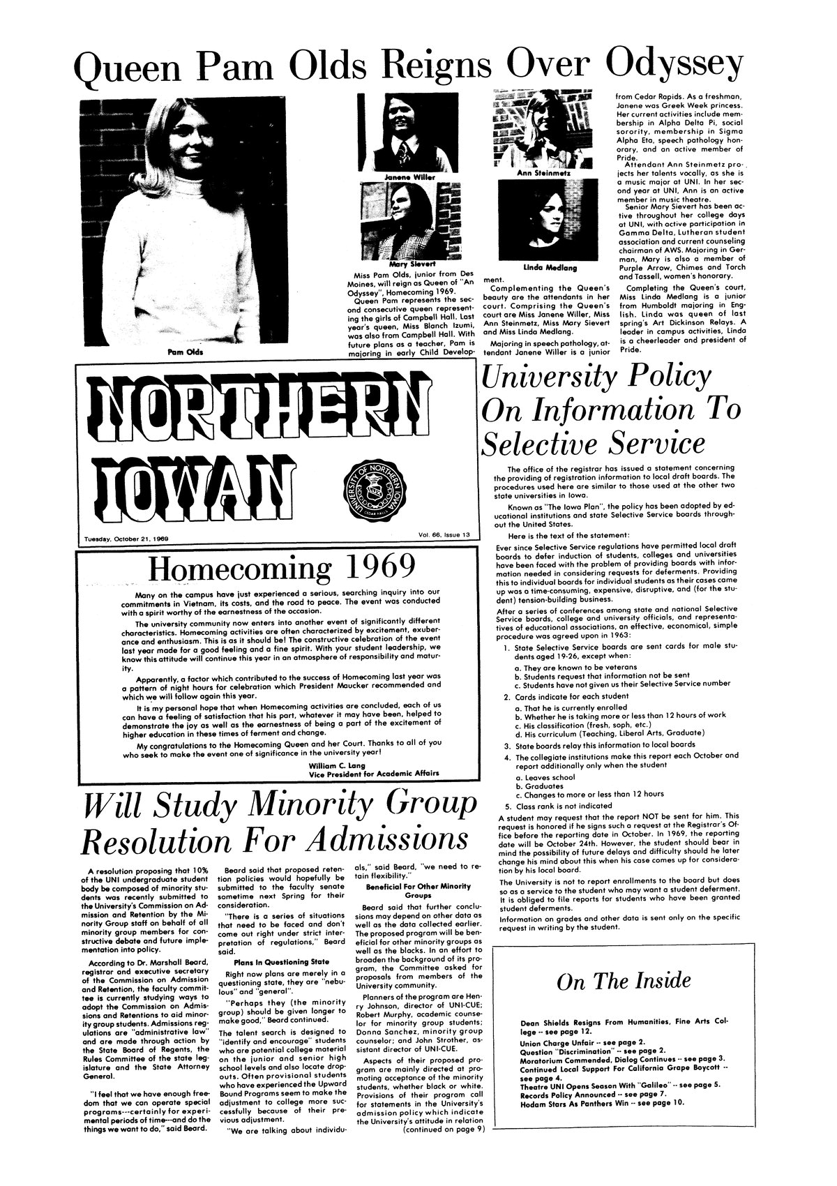 | Homecoming 1969 | Professor Lang hopes that students enjoy activities. |
