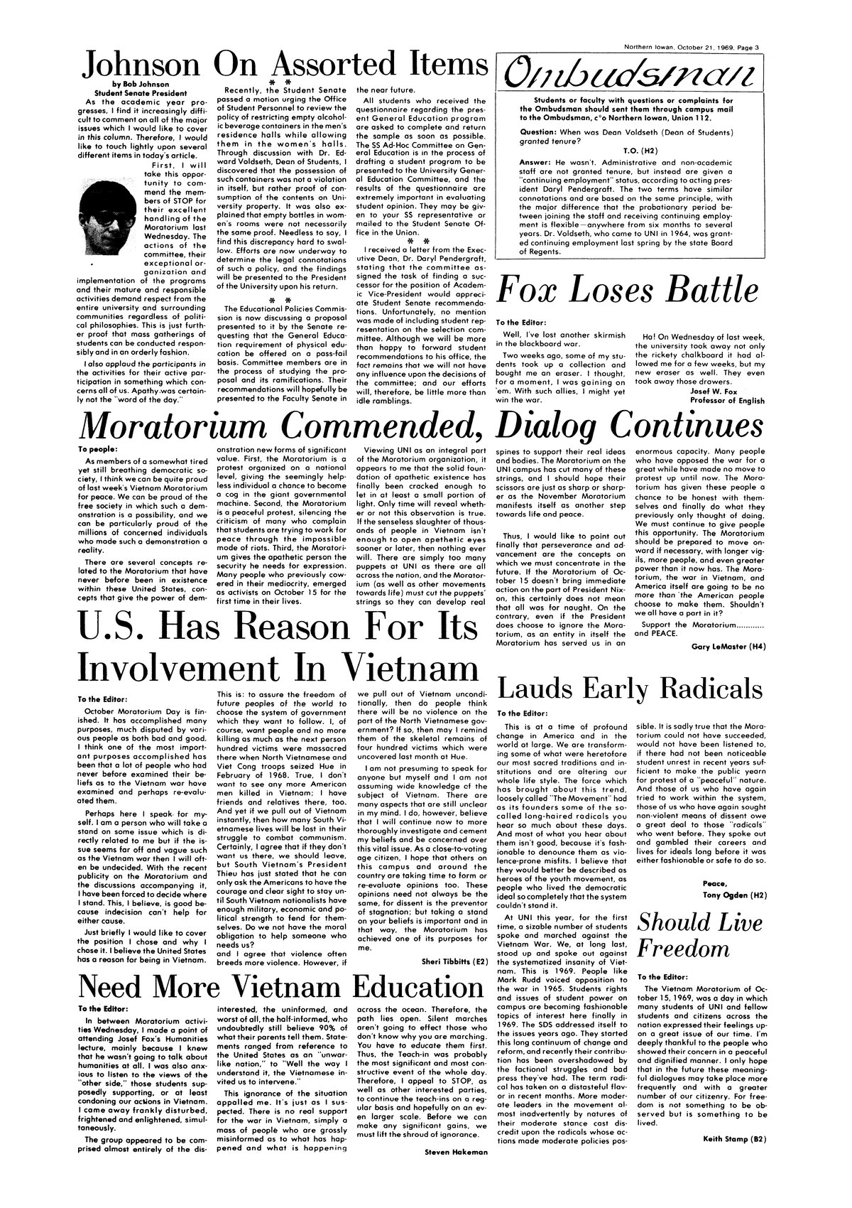 Johnson on assorted items Comments on Moratorium, general education, and other matters.