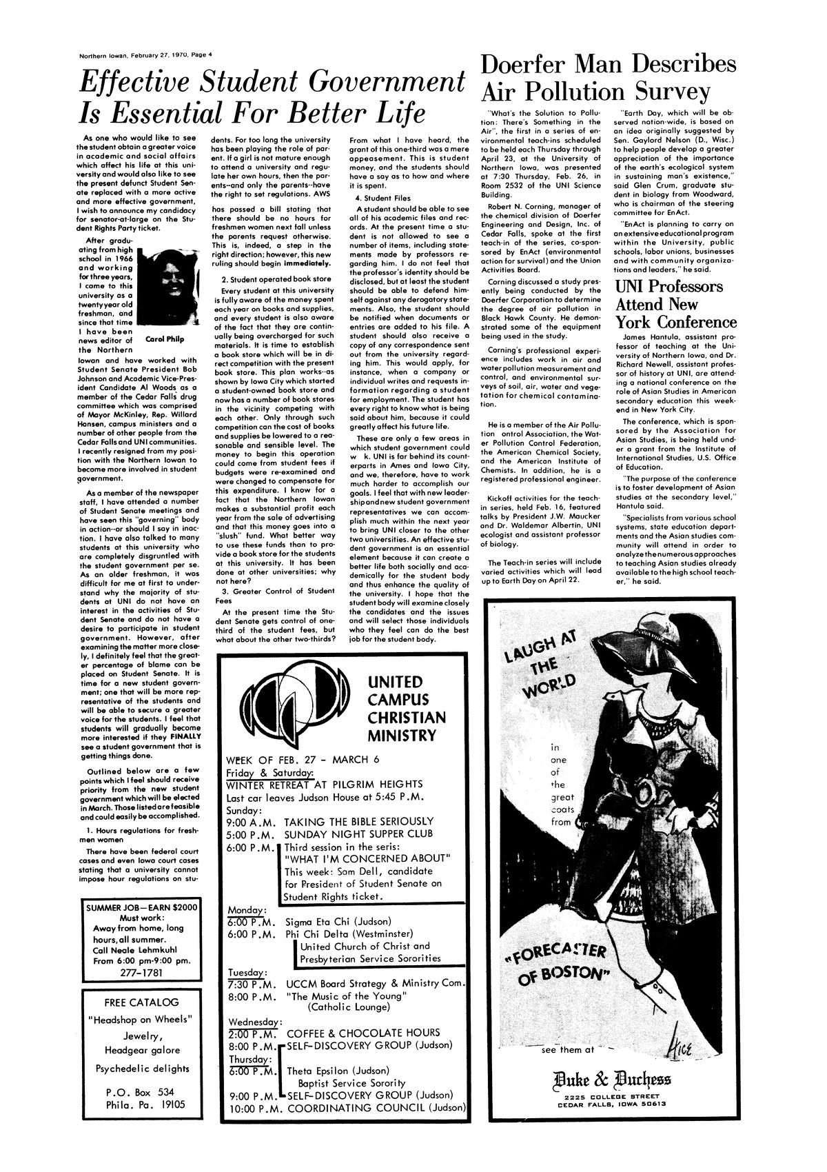| Effective student government is essential for better life | Carol Philp outlines those areas which need special attention including women's hours, bookstores, student fees, and student files. |