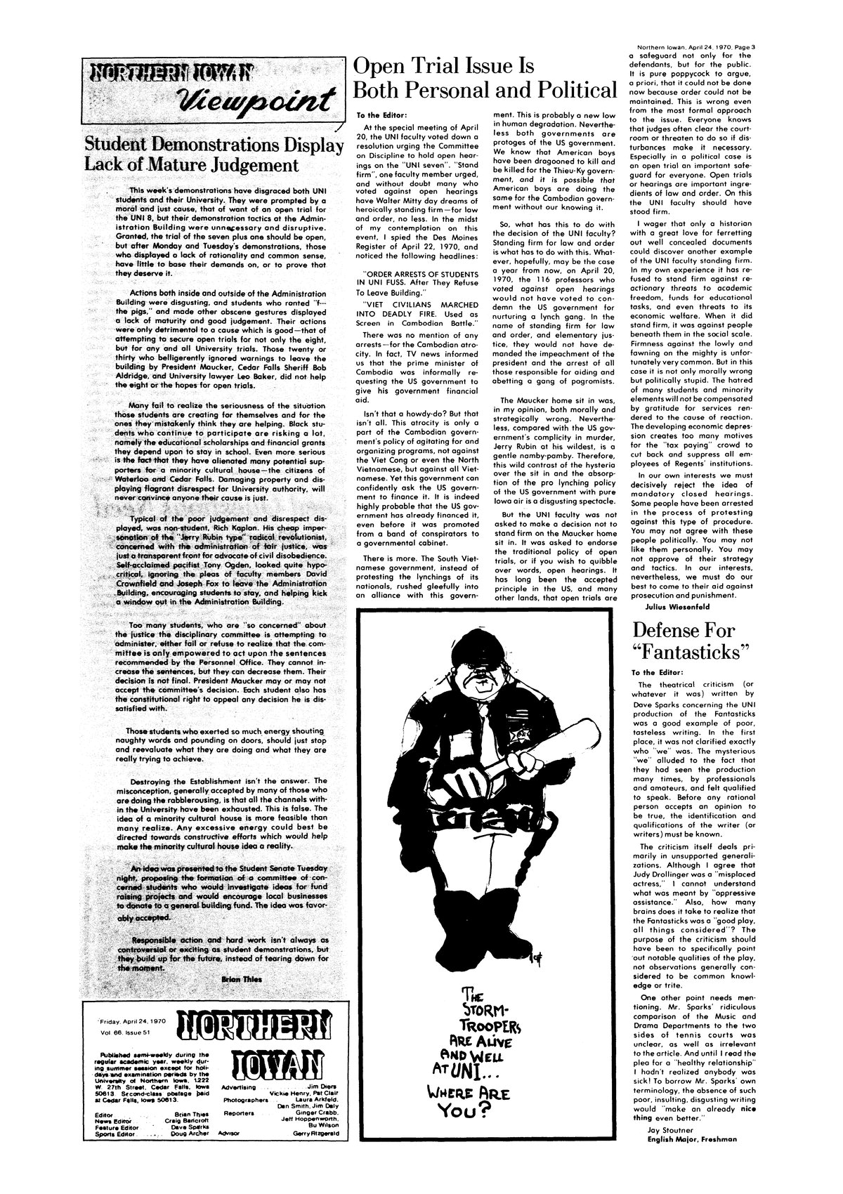 | Open trial issue is both personal and political | Berates faculty who voted to support closed hearings. |