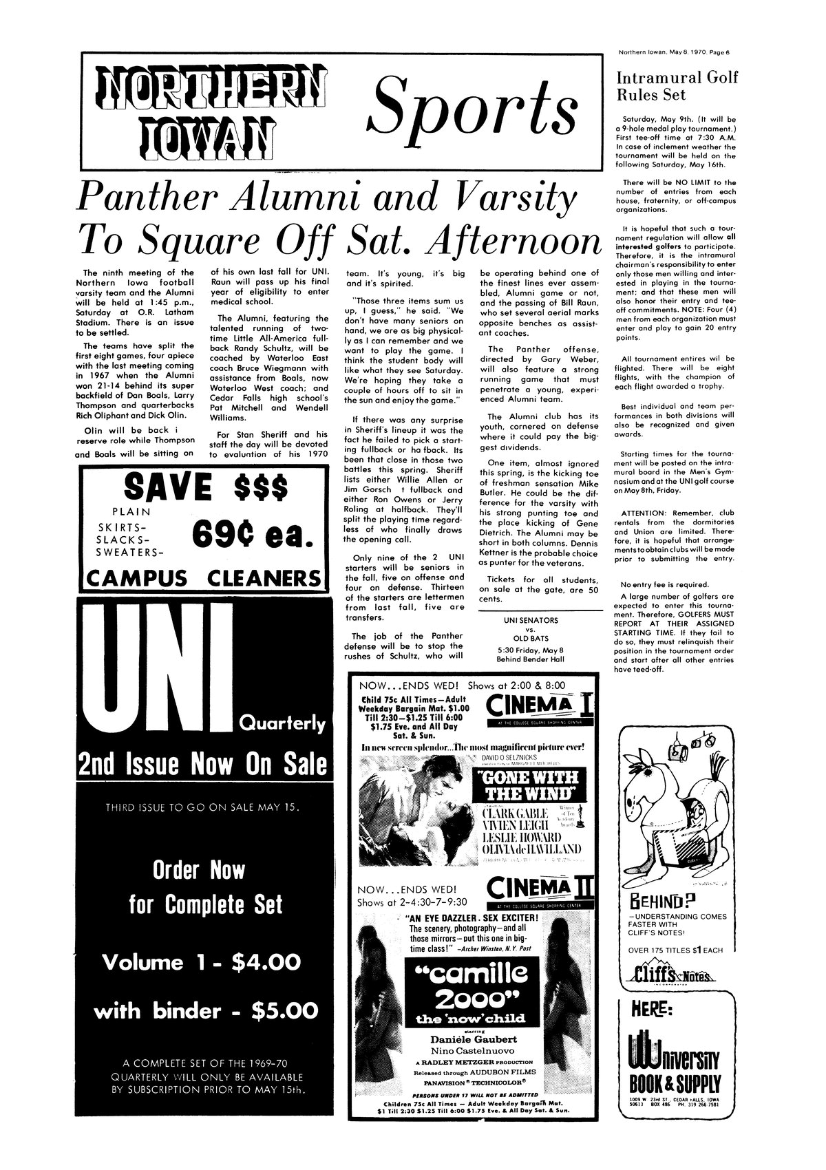 | Panther alumni and varsity to square off Sat. afternoon | UNI's varsity team will play a team comprised of UNI alumni on Saturday; photo. |