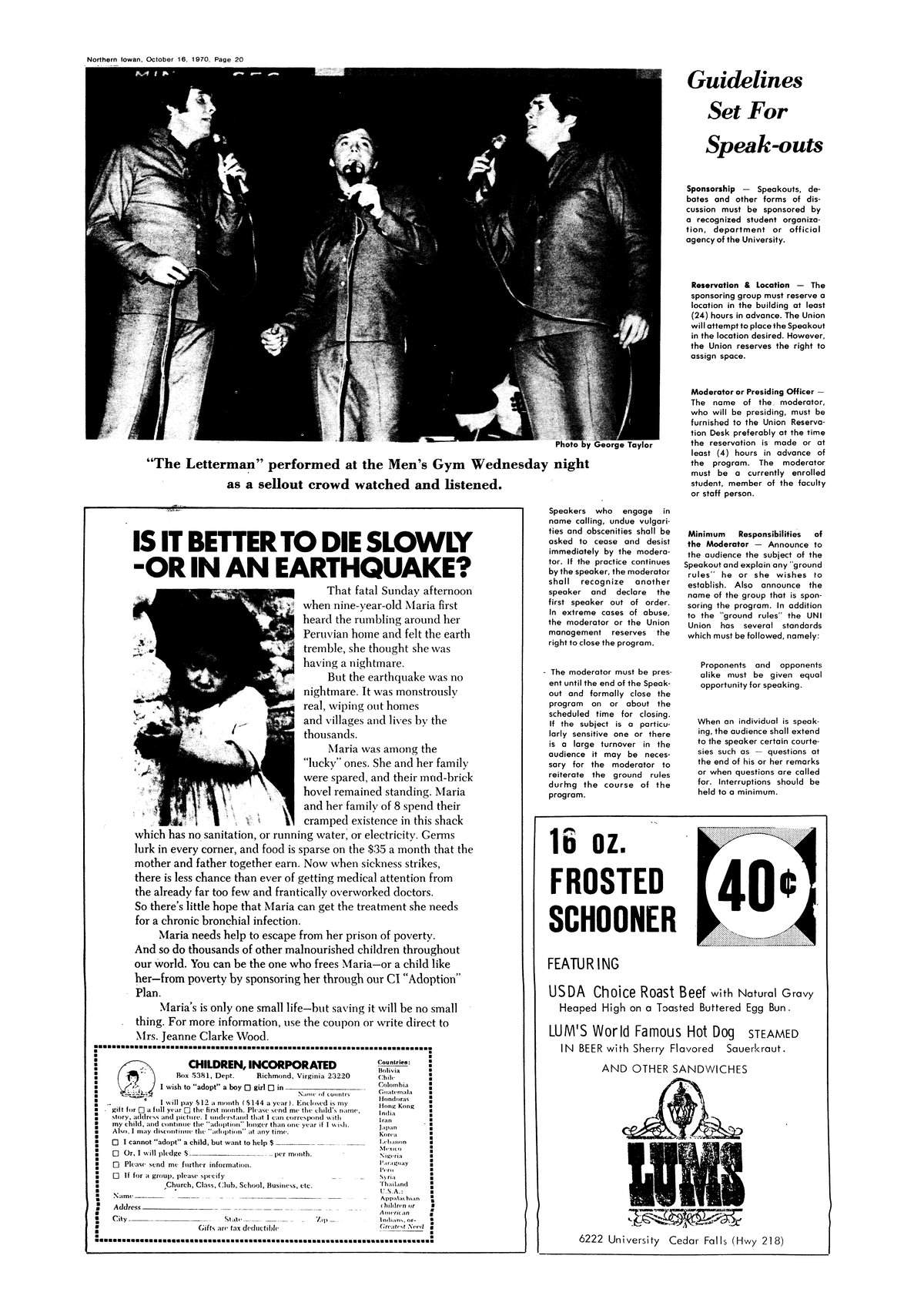 Untitled "The Letterman" performed for a UNI crowd; photo.