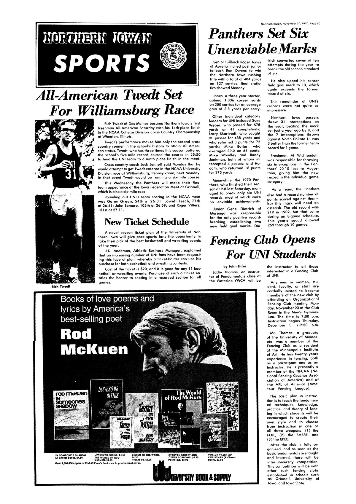 Panthers set six unenviable marks 1970 football season records and statistics announced.