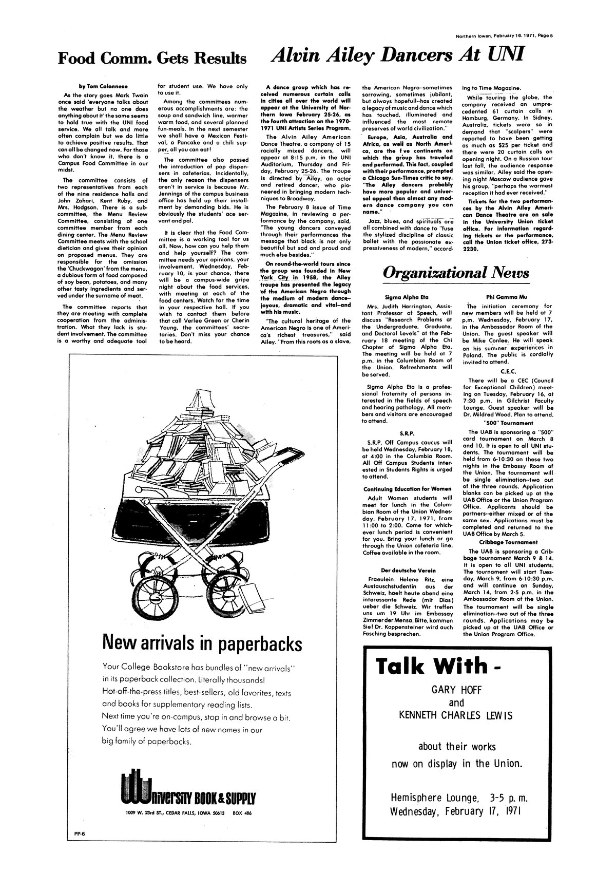 | Food Comm. gets results | Committee composed of students and administrators reviews menus and makes recommendations. |