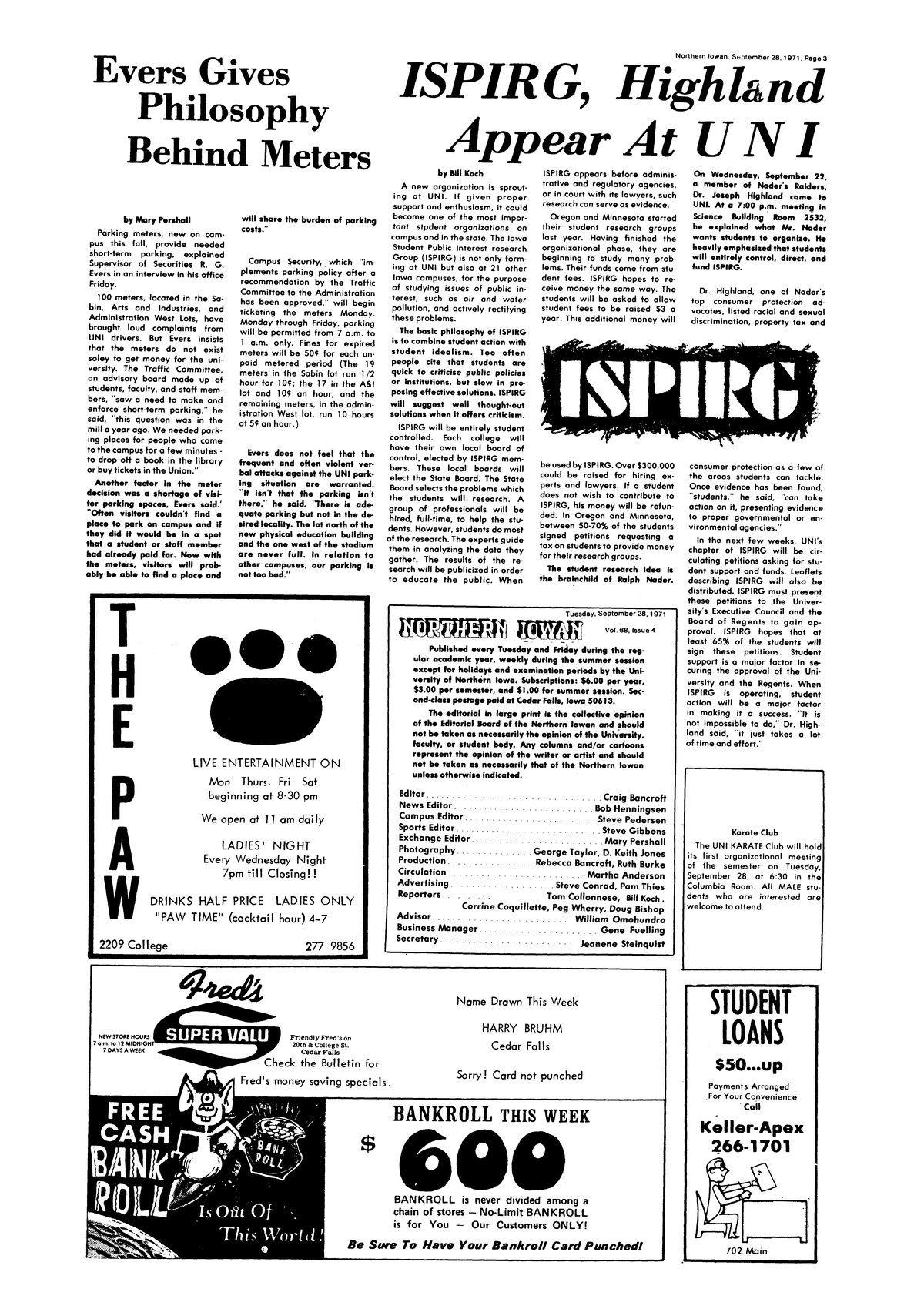 | ISPIRG, Highland appear at UNI | ISPIRG may organize on campus. |