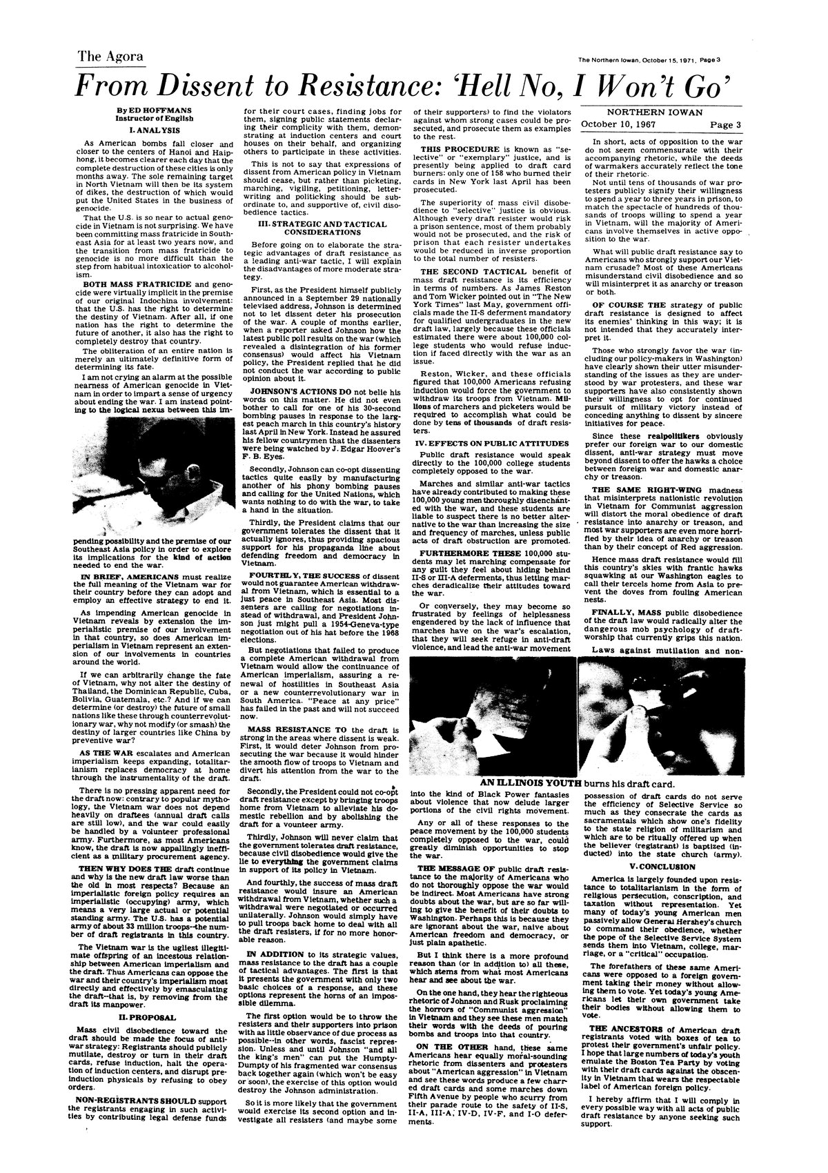 From dissent to resistance: 'Hell no, I won't go' Reprint of Mr. Hoffmans' 1967 draft manifesto; photo.