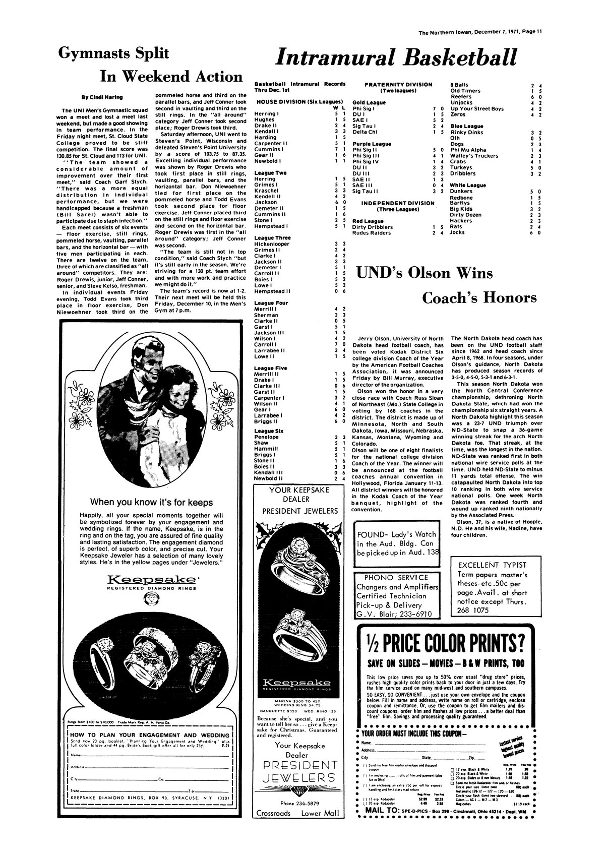 | UND's Olson wins coach's honors | Jerry Olson, the University of North Dakota coach, was named NCC coach of the year. |