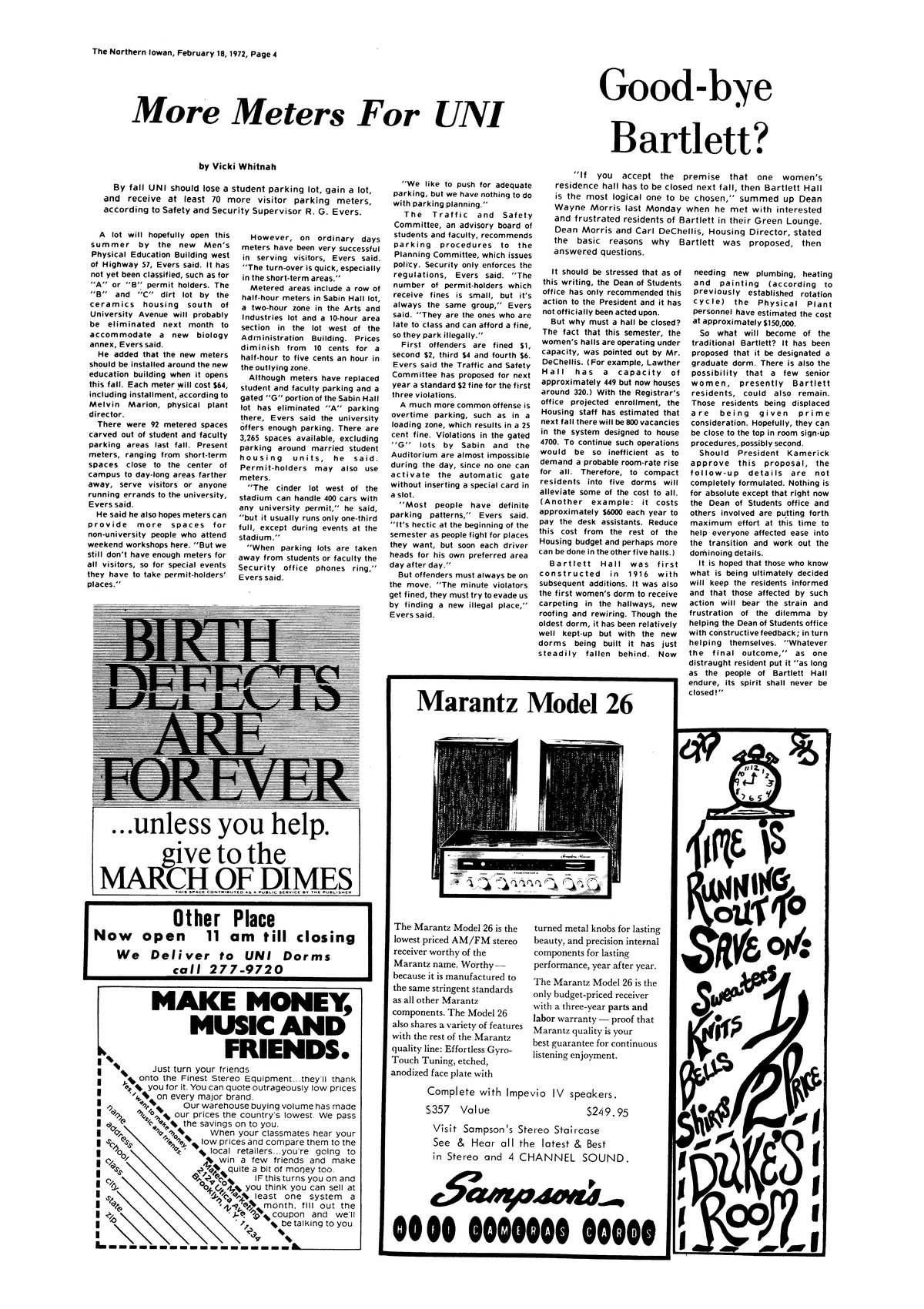 | Good-bye Bartlett? | With decline in enrollment, the future of Bartlett Hall is under debate; may close, or house graduate students. |