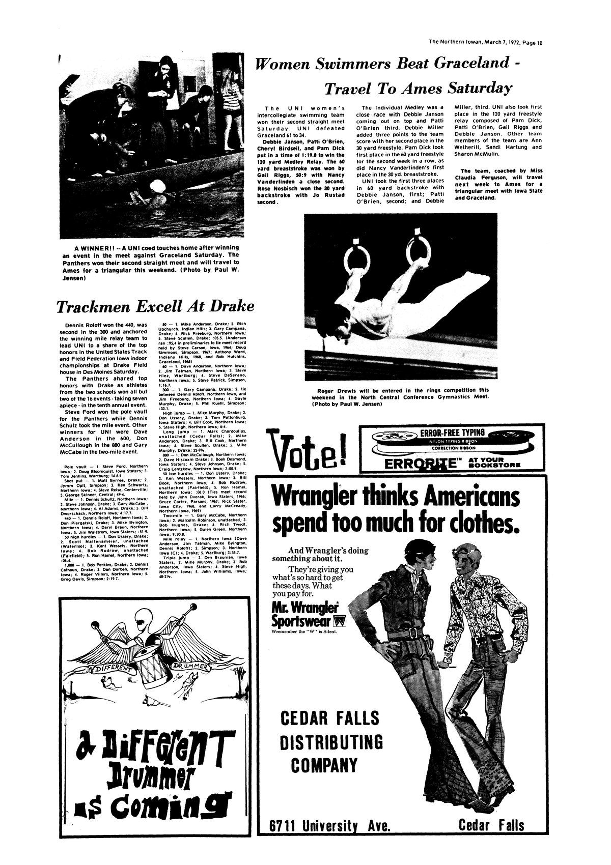 | Trackmen excel at Drake | UNI participated in the United States Federation Iowa meet on Saturday at Drake. |