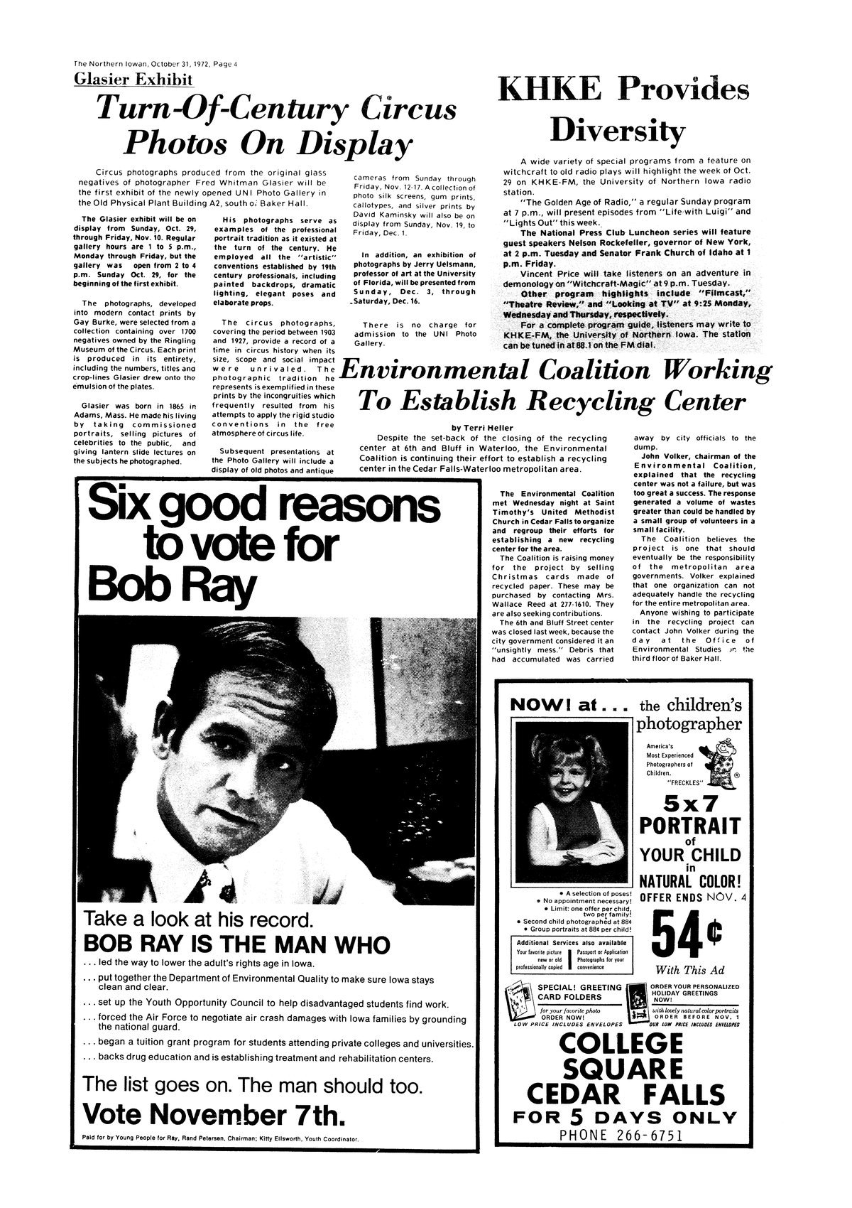 | Turn-of-century circus photos on display; Glasier exhibit | First display in Art 2. |