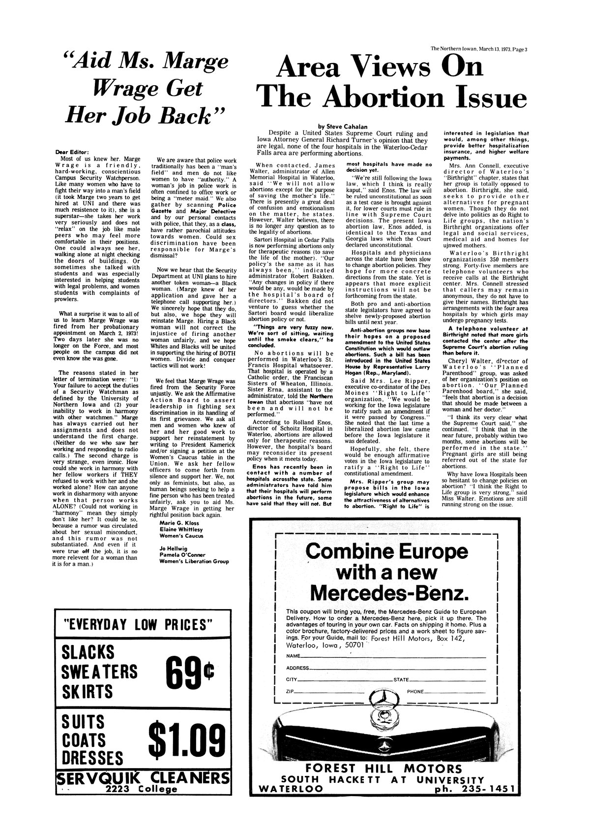 | Area views on the abortion issue | Survey of local hospitals; none currently offers abortions. |