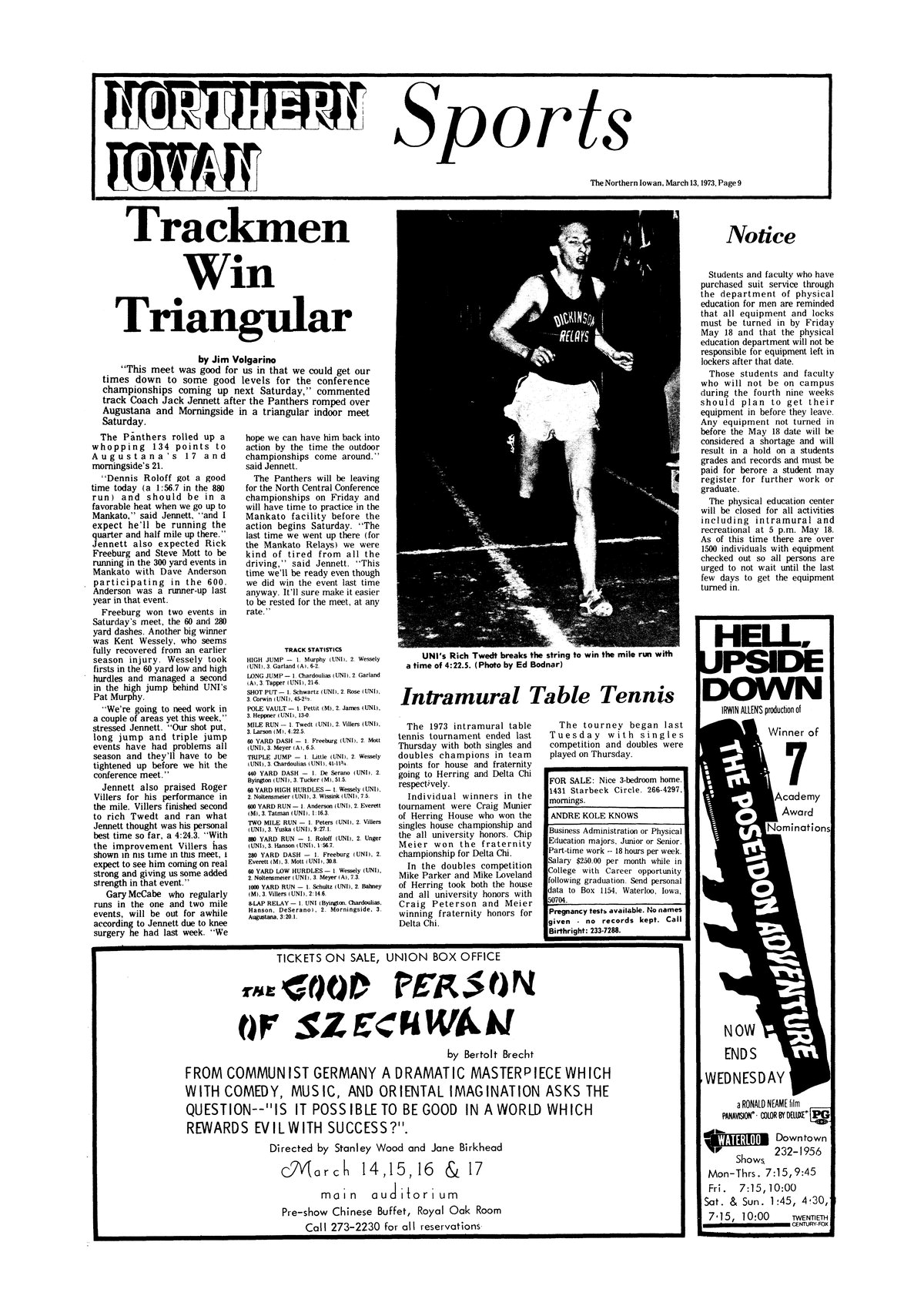 | Intramural table tennis | Herring and Delta Chi win the intramural table tennis tournament. |