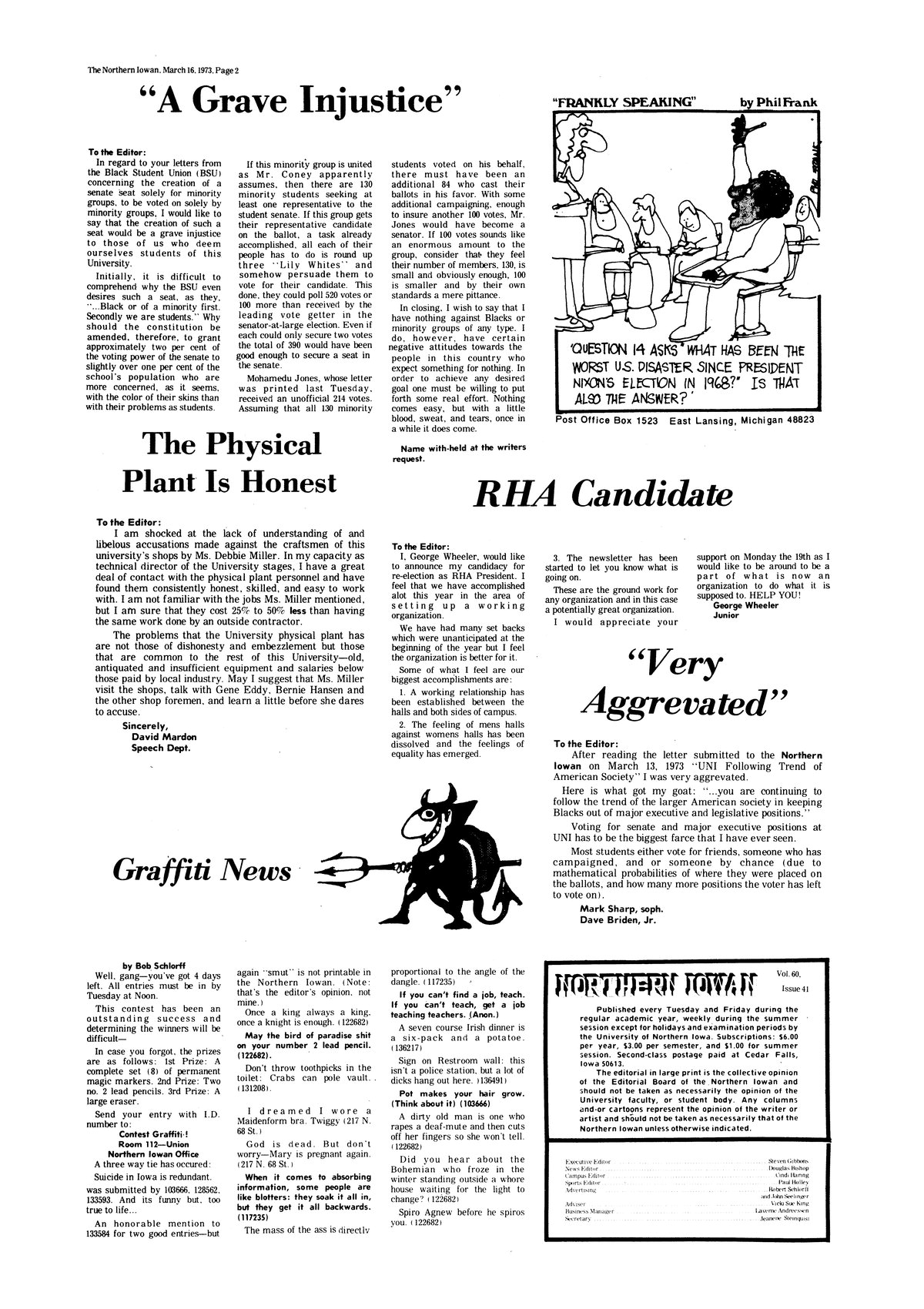 "A grave injustice" Disagrees with recent letters asking for minority seat on Student Senate.
