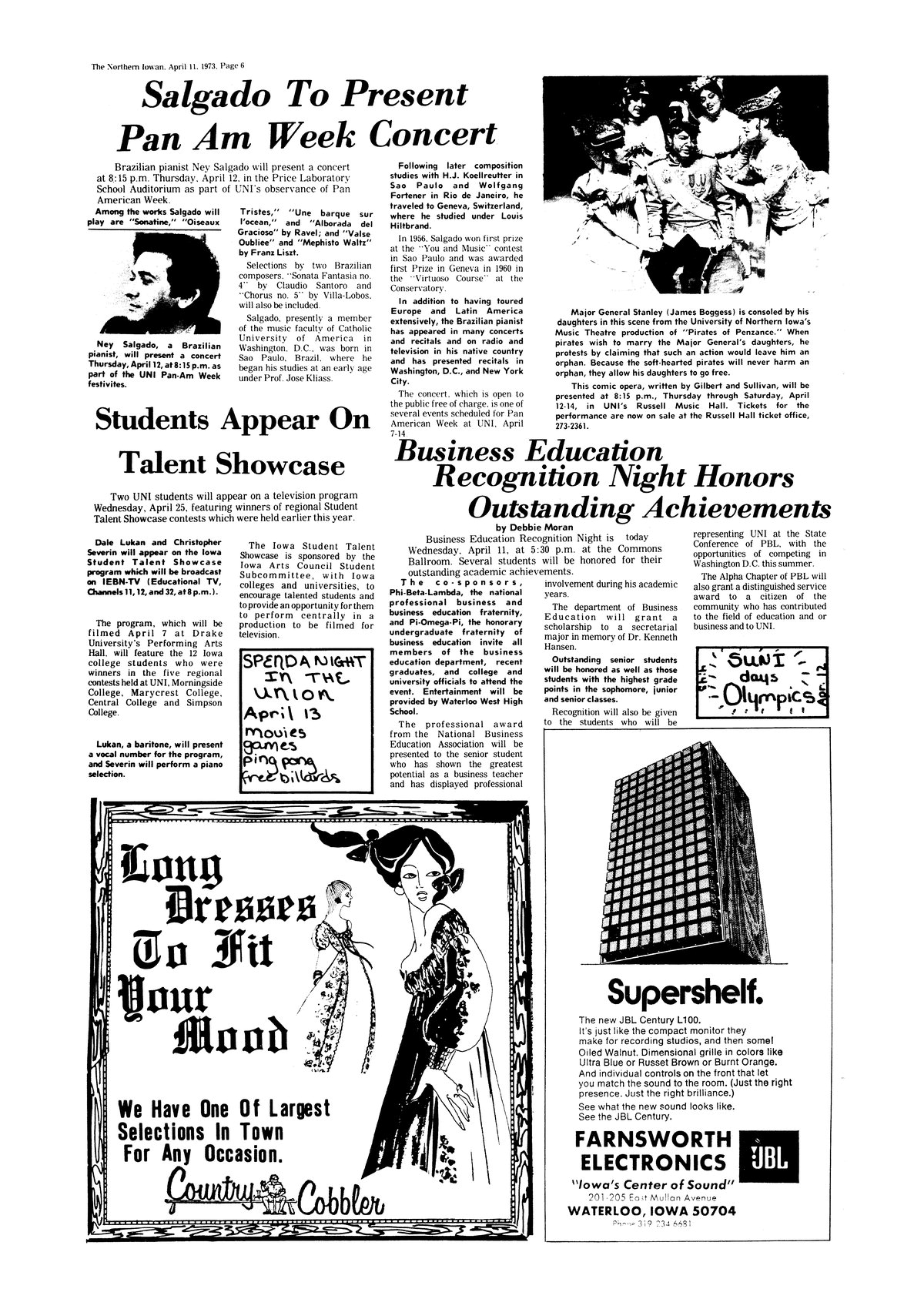 | Untitled | The Major General is comforted by his daughters in UNI's "Pirates of Penzance"; photo. |