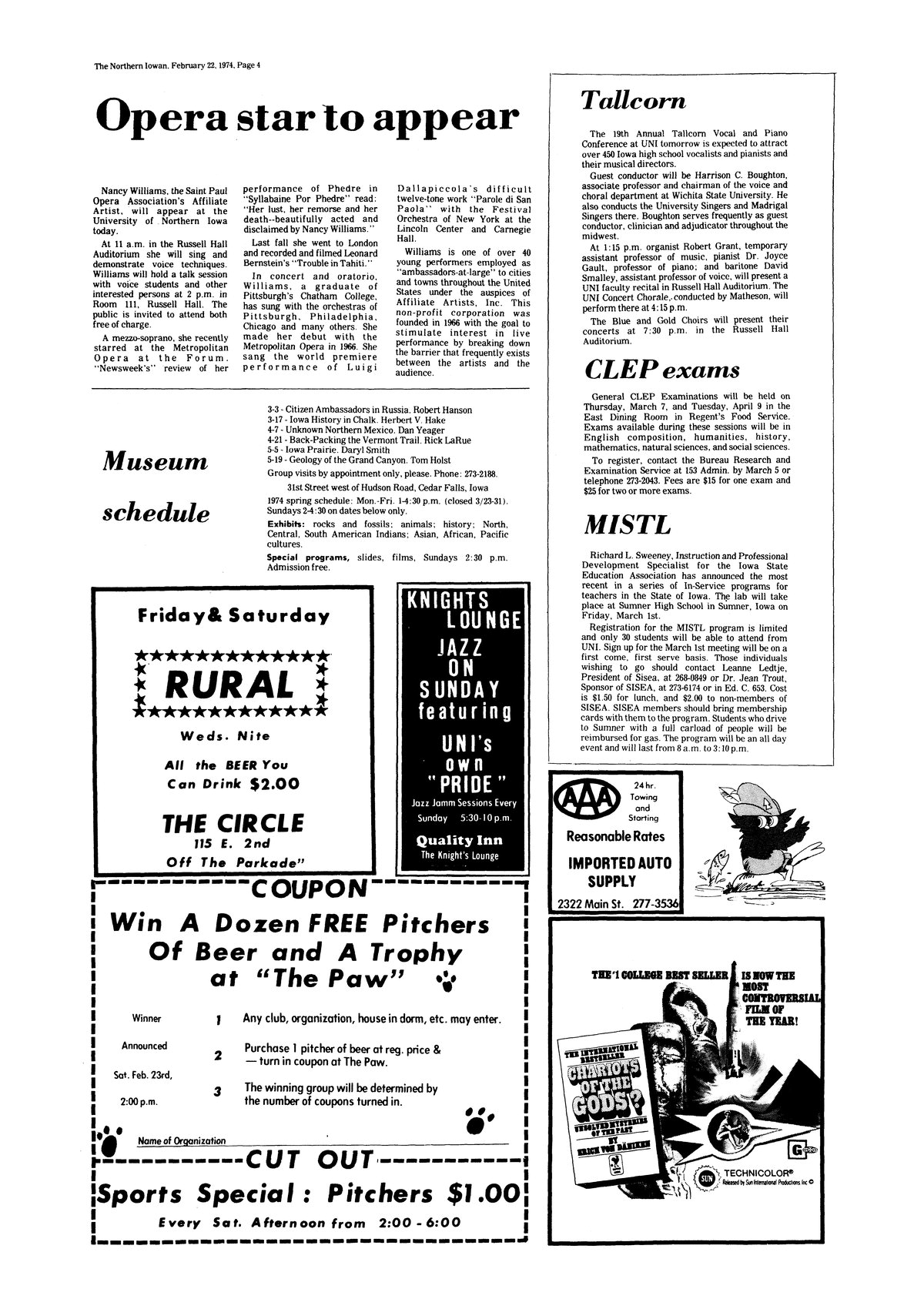 | Opera star to appear | Nancy Williams will demonstrate and talk with students. |