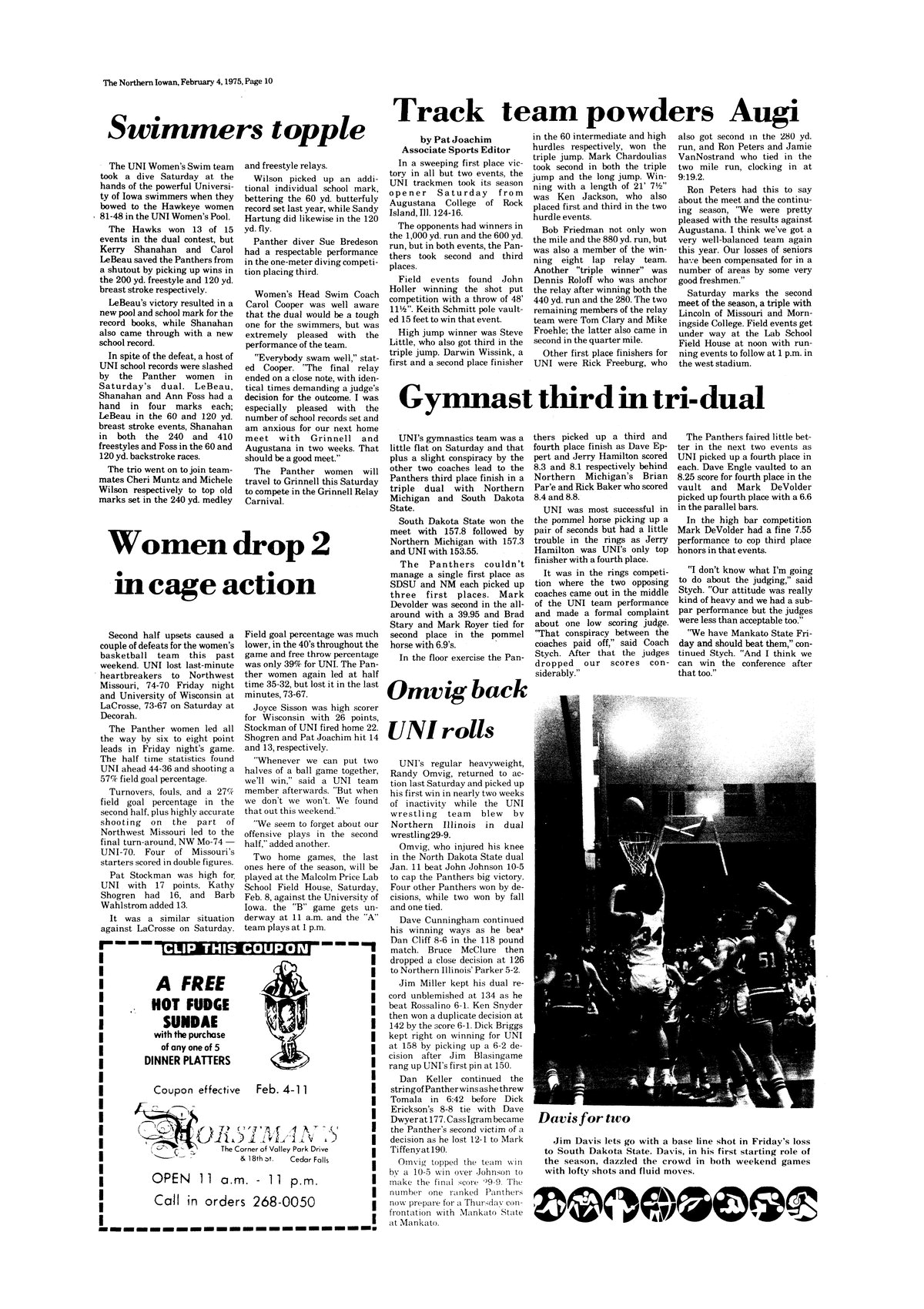 | Swimmers topple | UNI lost to Iowa on Saturday. |