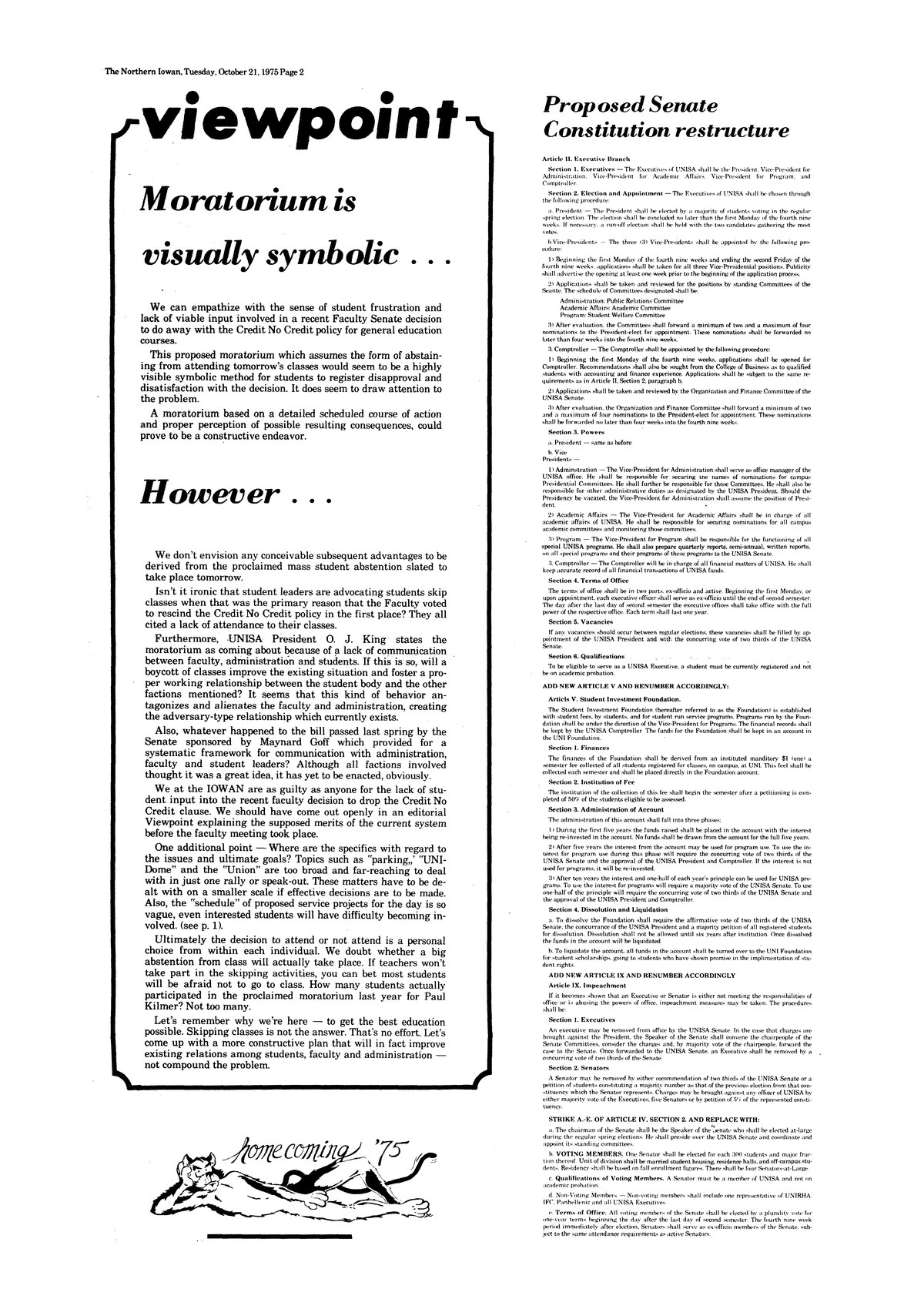 Viewpoint; Moratorium is visually symbolic . . . However . . . Does not believe that the class moratorium is organized or focussed well; students should go to class.