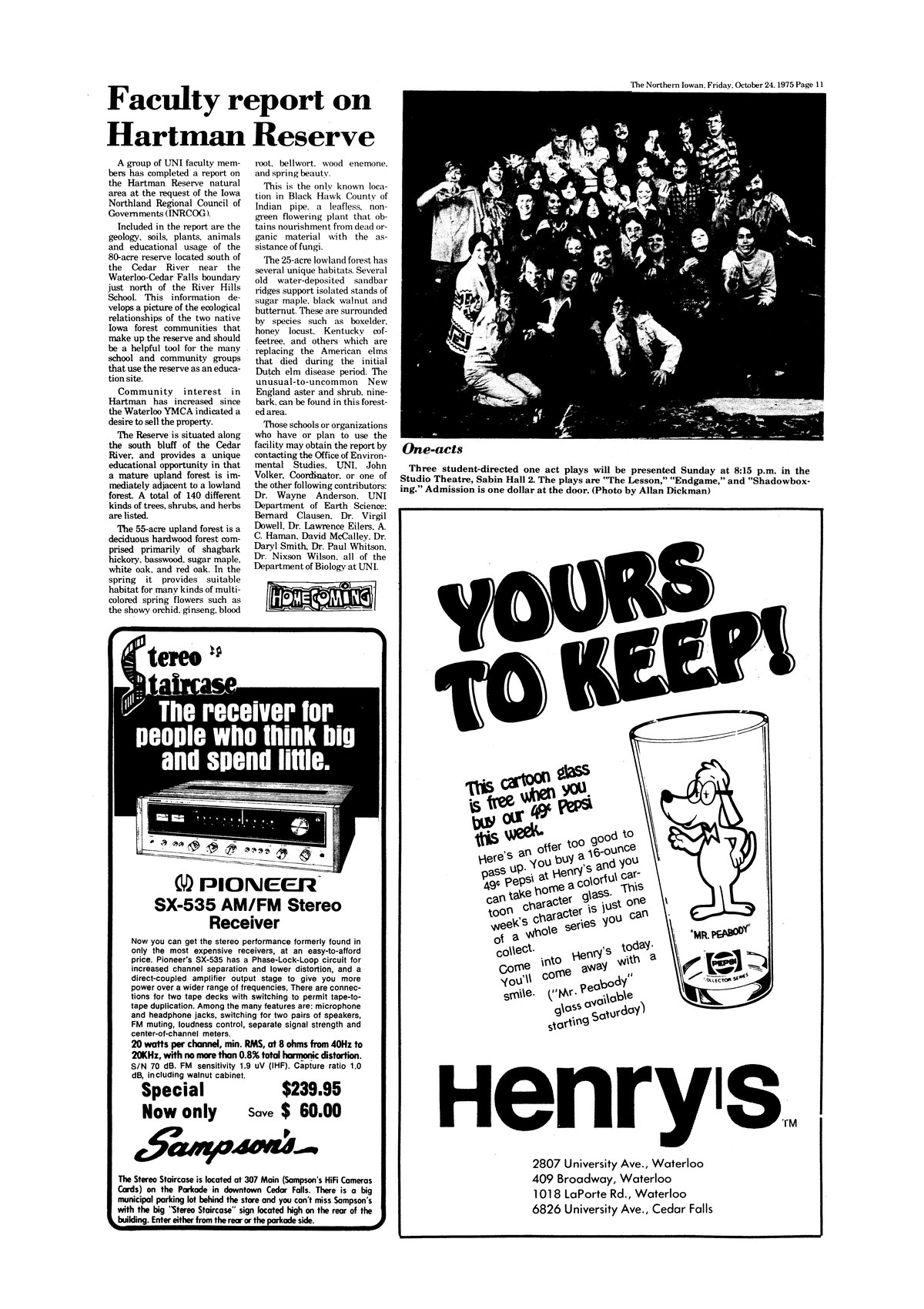 | One-acts | The casts for three student-directed one act plays pose for the camera; photo. |