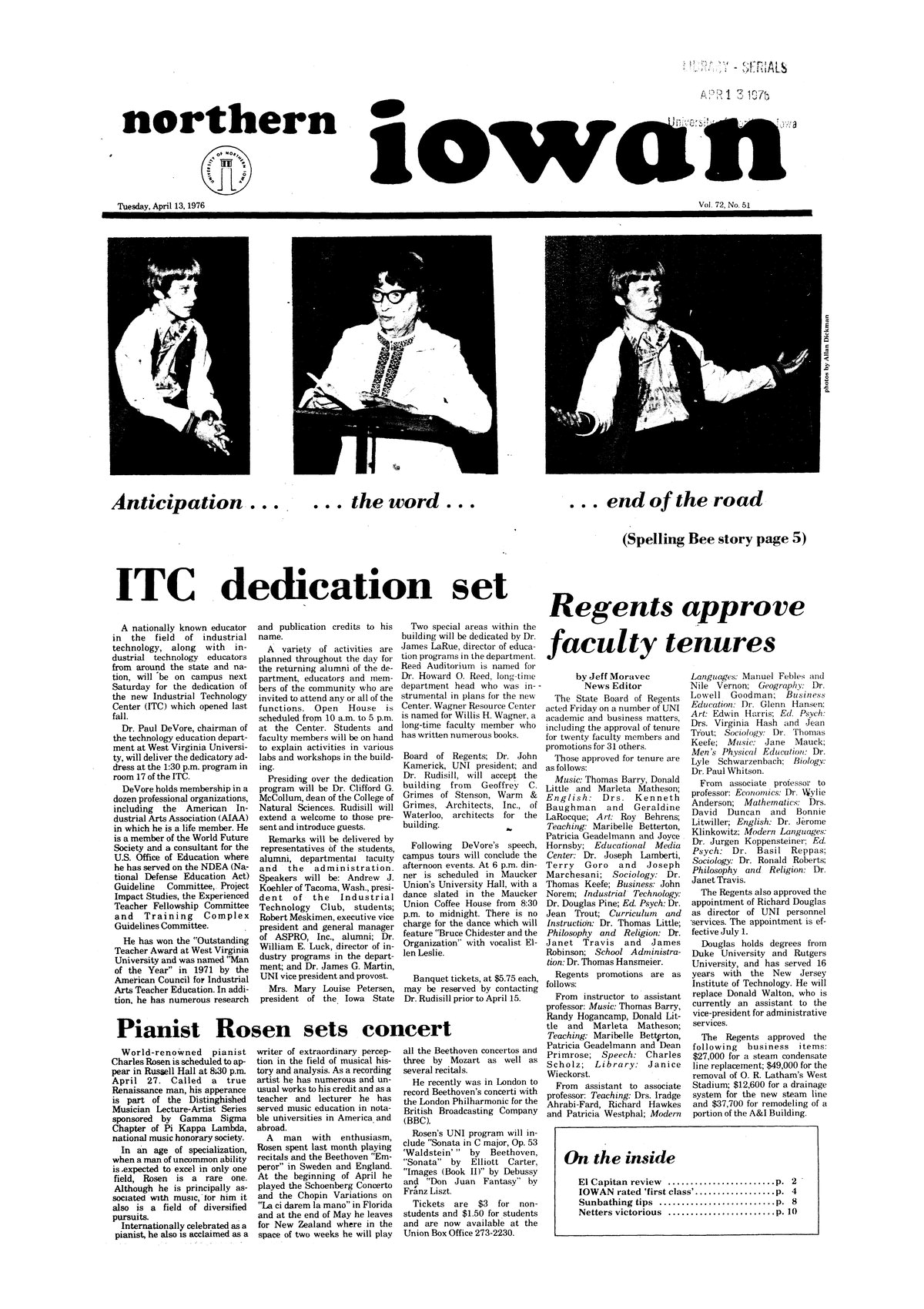 | Regents approve faculty tenures | List of those receiving tenure and promotion; approve contract to raze O. R. Latham Stadium. |