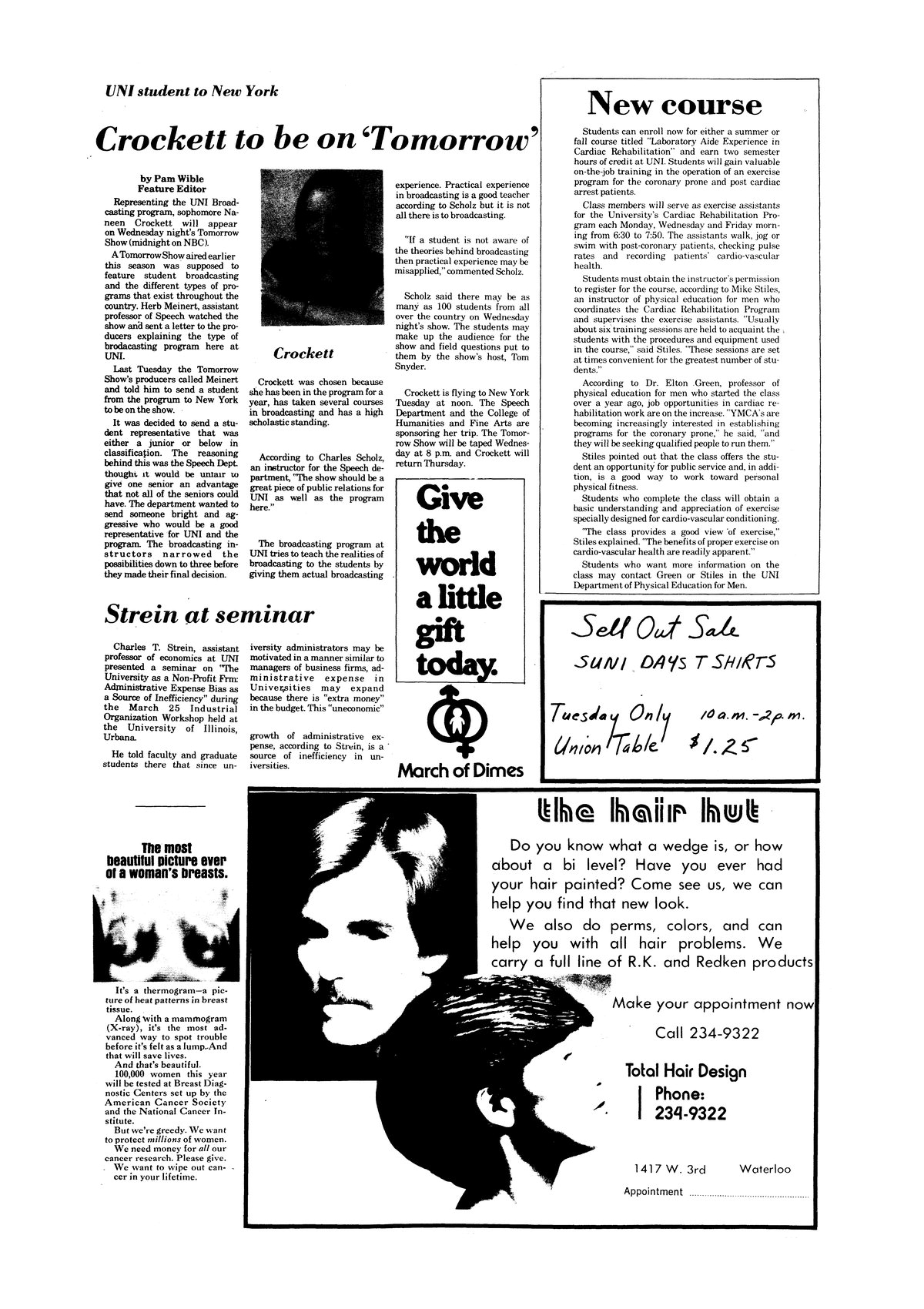Crockett to be on 'Tomorrow'; UNI student to New York Nan Crockett will represent the UNI broadcasting program; photo.