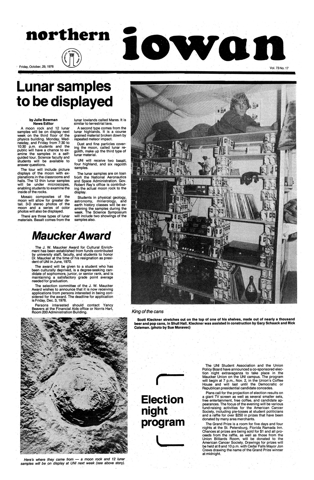 Lunar samples to be displayed Twelve lunar samples will be on display next week in the Physics Building; photo.