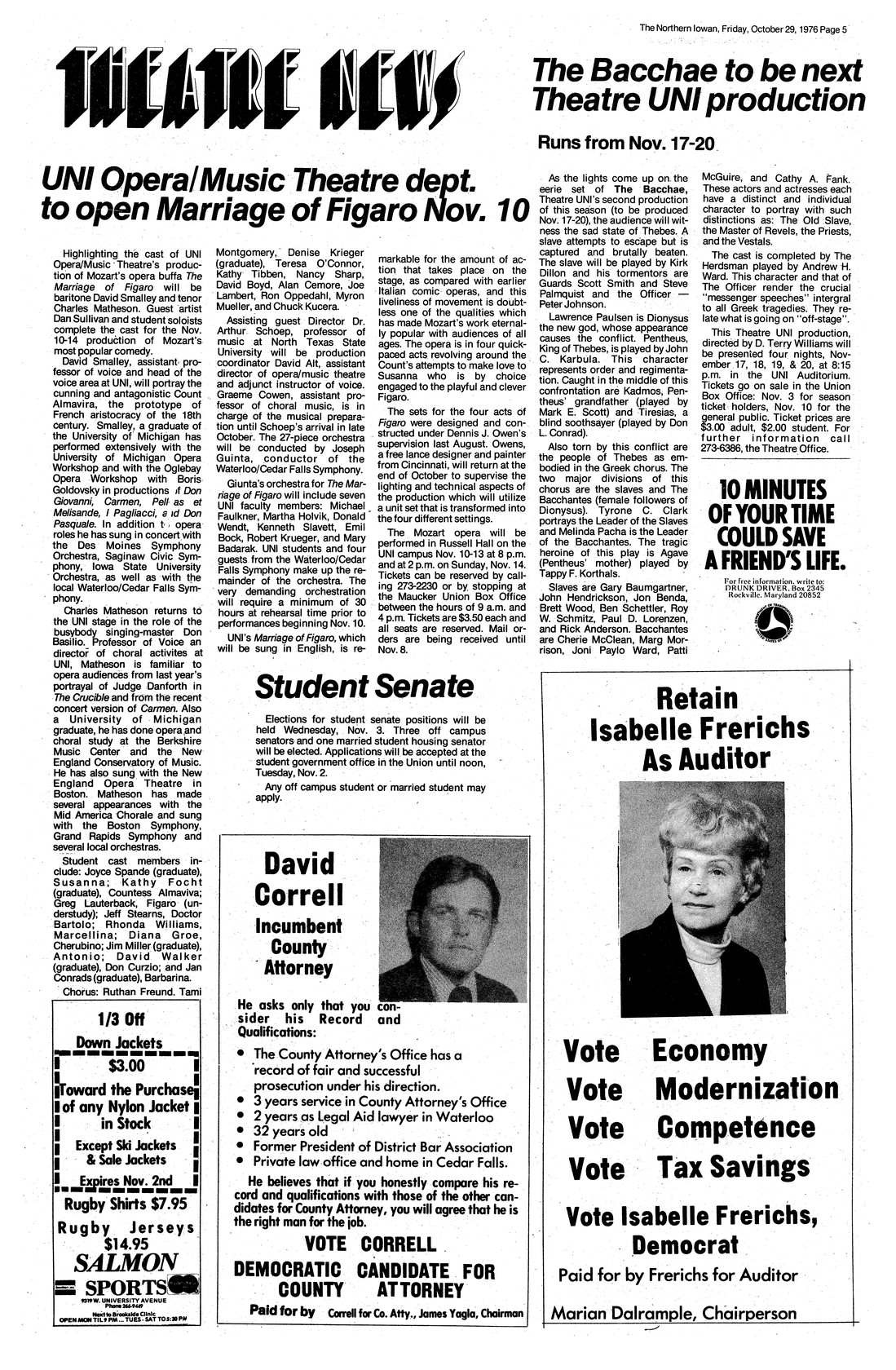 UNI Opera/Music Theatre dept. to open Marriage of Figaro Nov. 10 Profile of the cast members of UNI's Opera/Music Theatre's production "Marriage of Figaro".