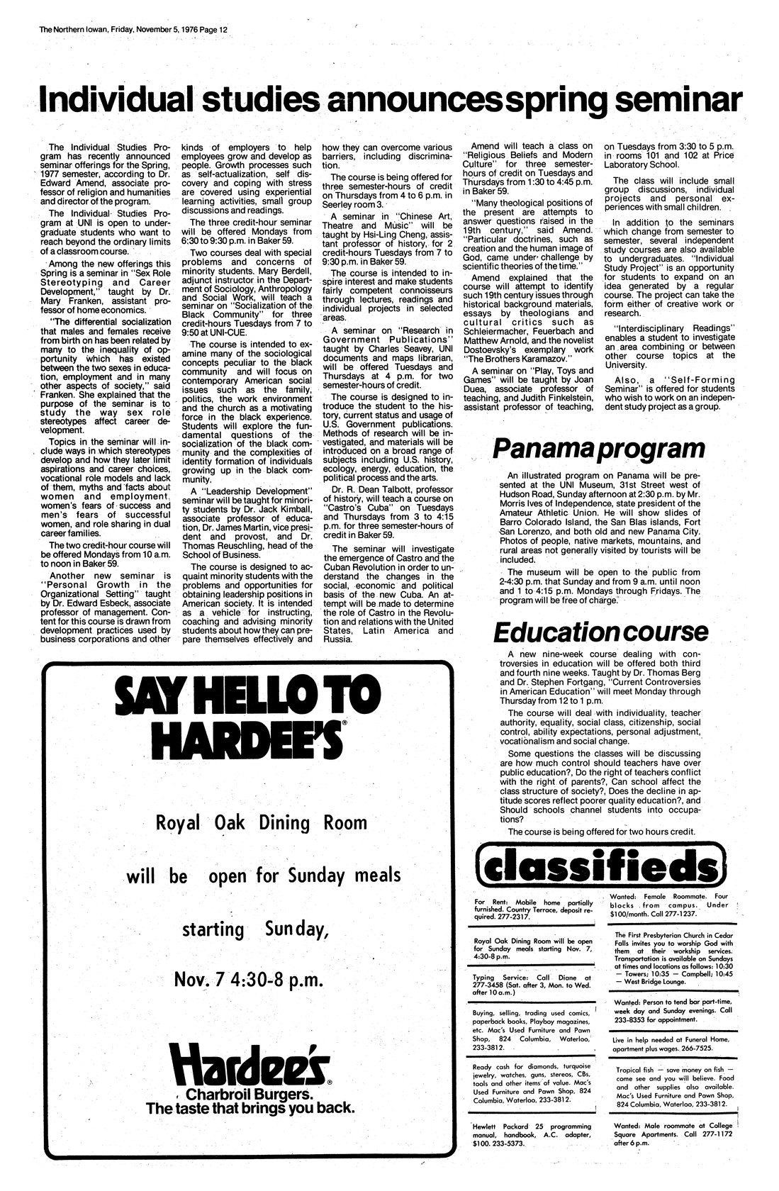 Individual Studies announces spring seminar Descriptions of seminars announced by the Individual Studies Program.