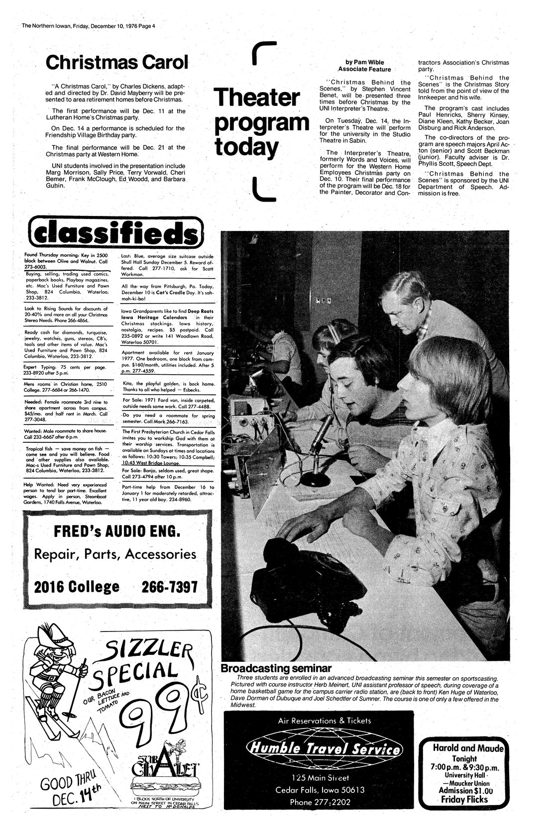 | Theater program today | Interpreters Theater group will present "Christmas Behind the Scenes". |