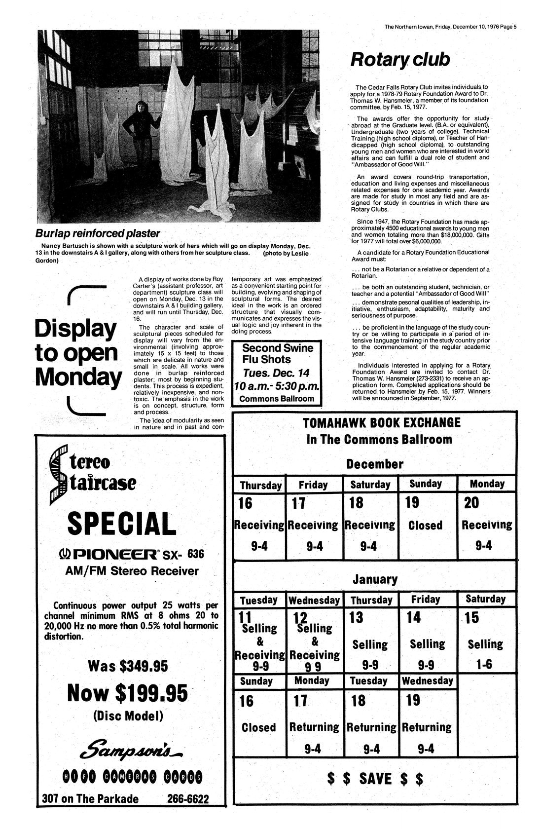 Display to open Monday Professor Carter's sculpture class will exhibit material; photo.