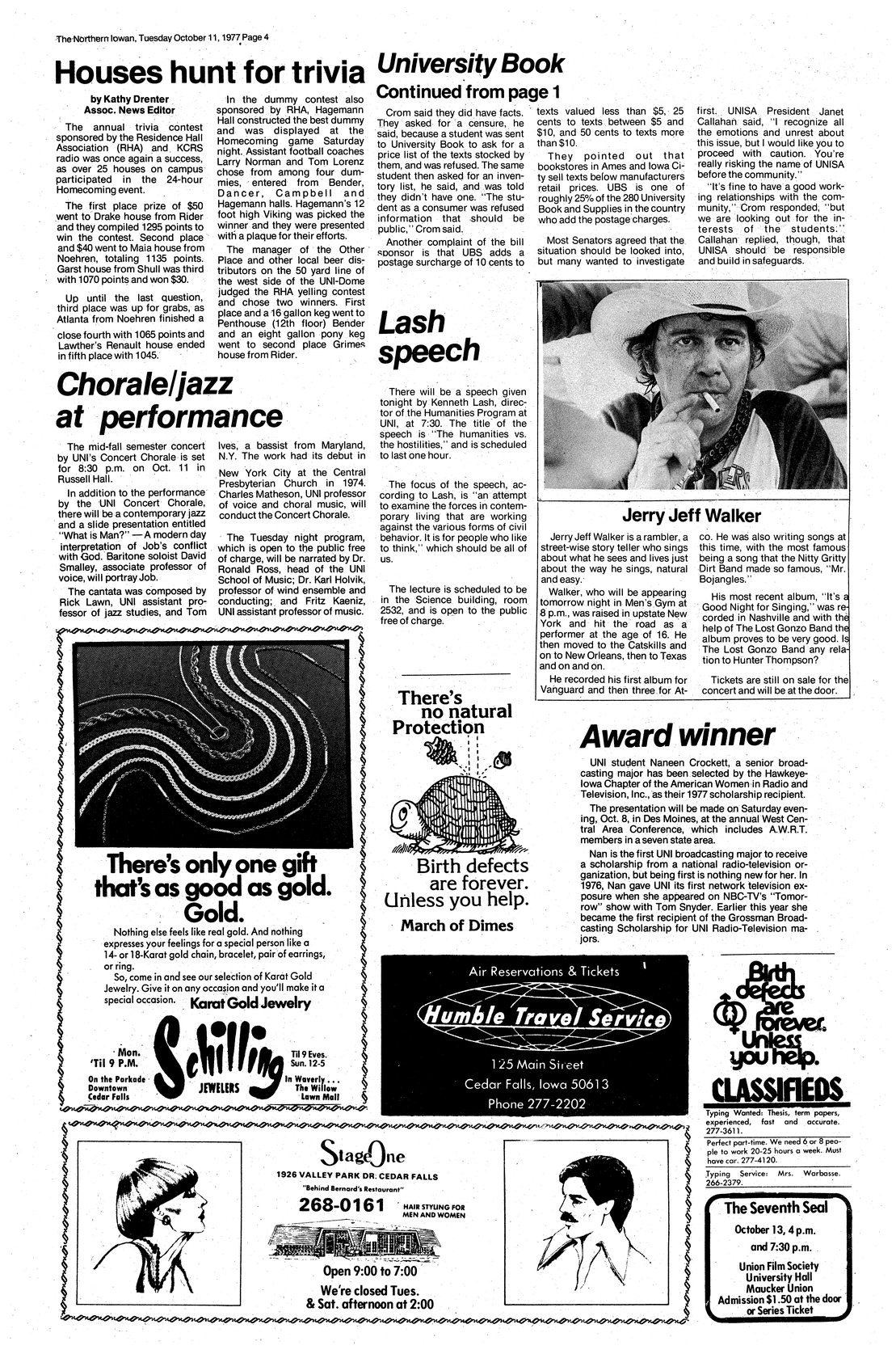 | Lash speech | Kenneth Lash, director of the Humanities program at UNI, gave a speech on "The humanities vs. the hostilities." |