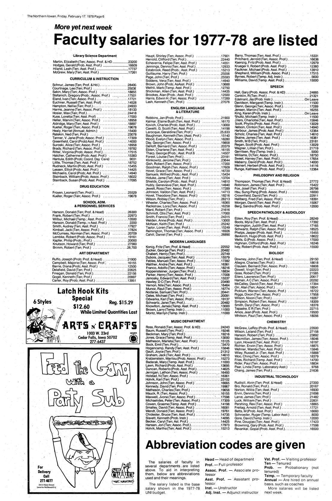 | Faculty salaries for 1977-1978 are listed: more yet next week | The continuing list of faculty salaries. |