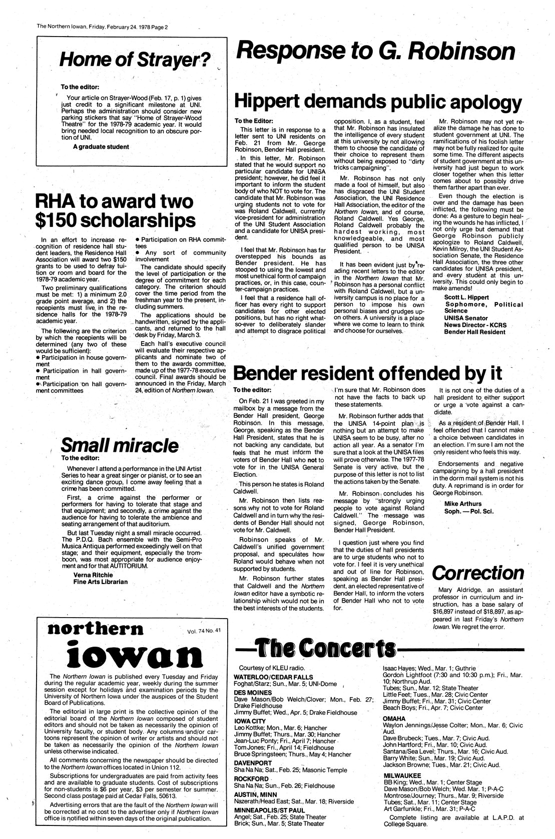 | Bender resident offended by it | George Robinson urged students not to vote for Roland Caldwell. |