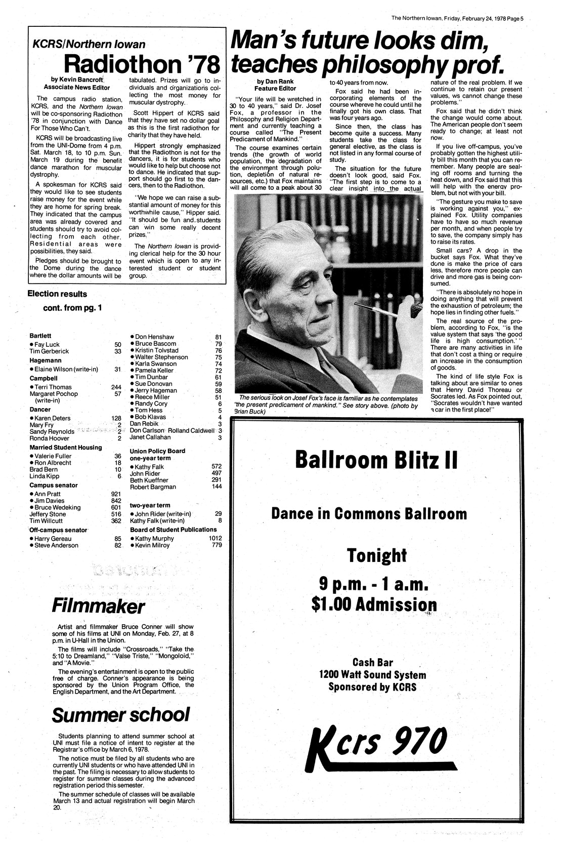 Man's future looks dim, teaches philosophy prof. Professor Fox offers his views on the future; photo.