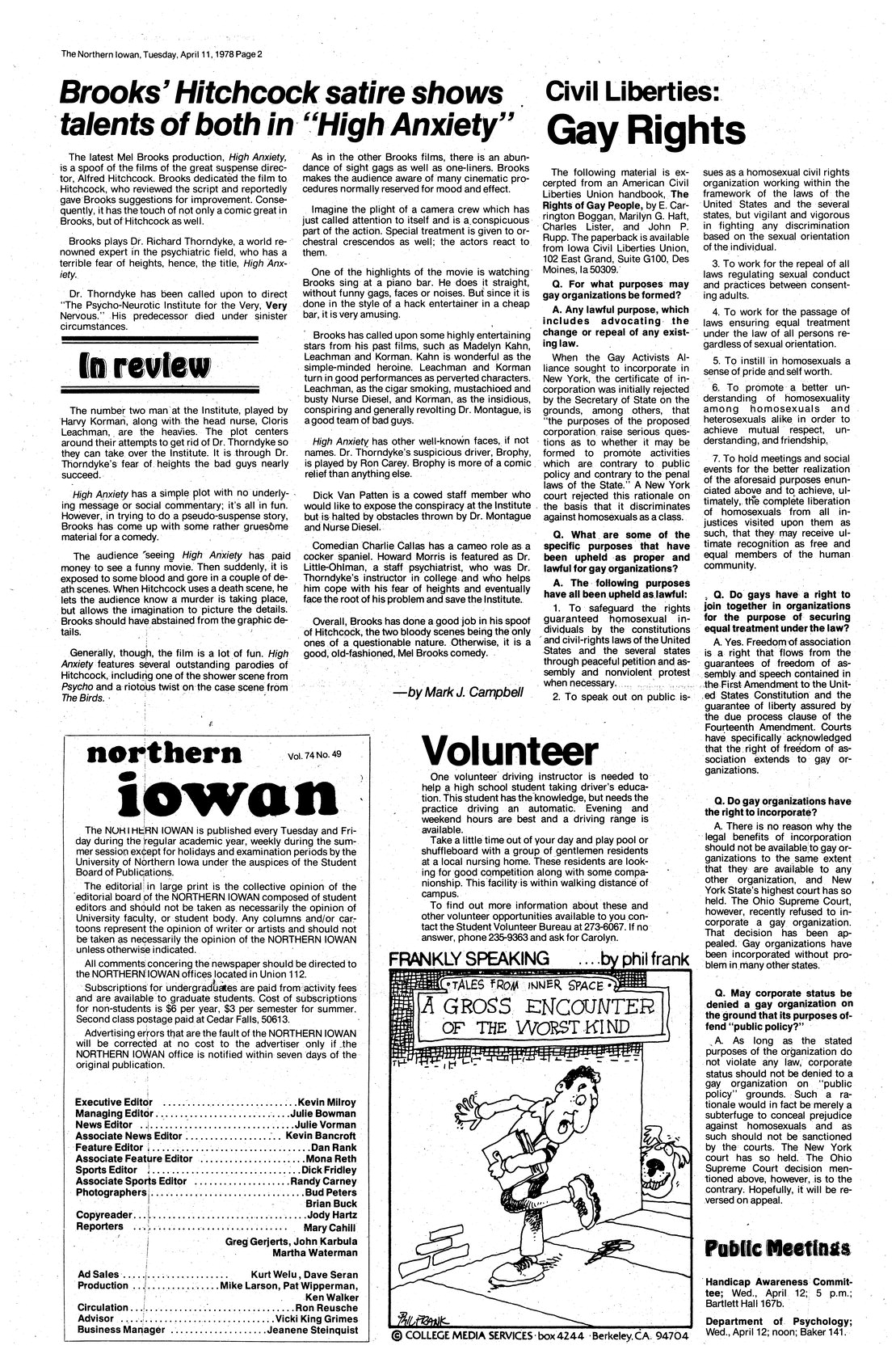 | Brooks' Hitchcock satire shows talents of both in "High Anxiety" | Review of movie "High Anxiety," a Mel Brooks production. |