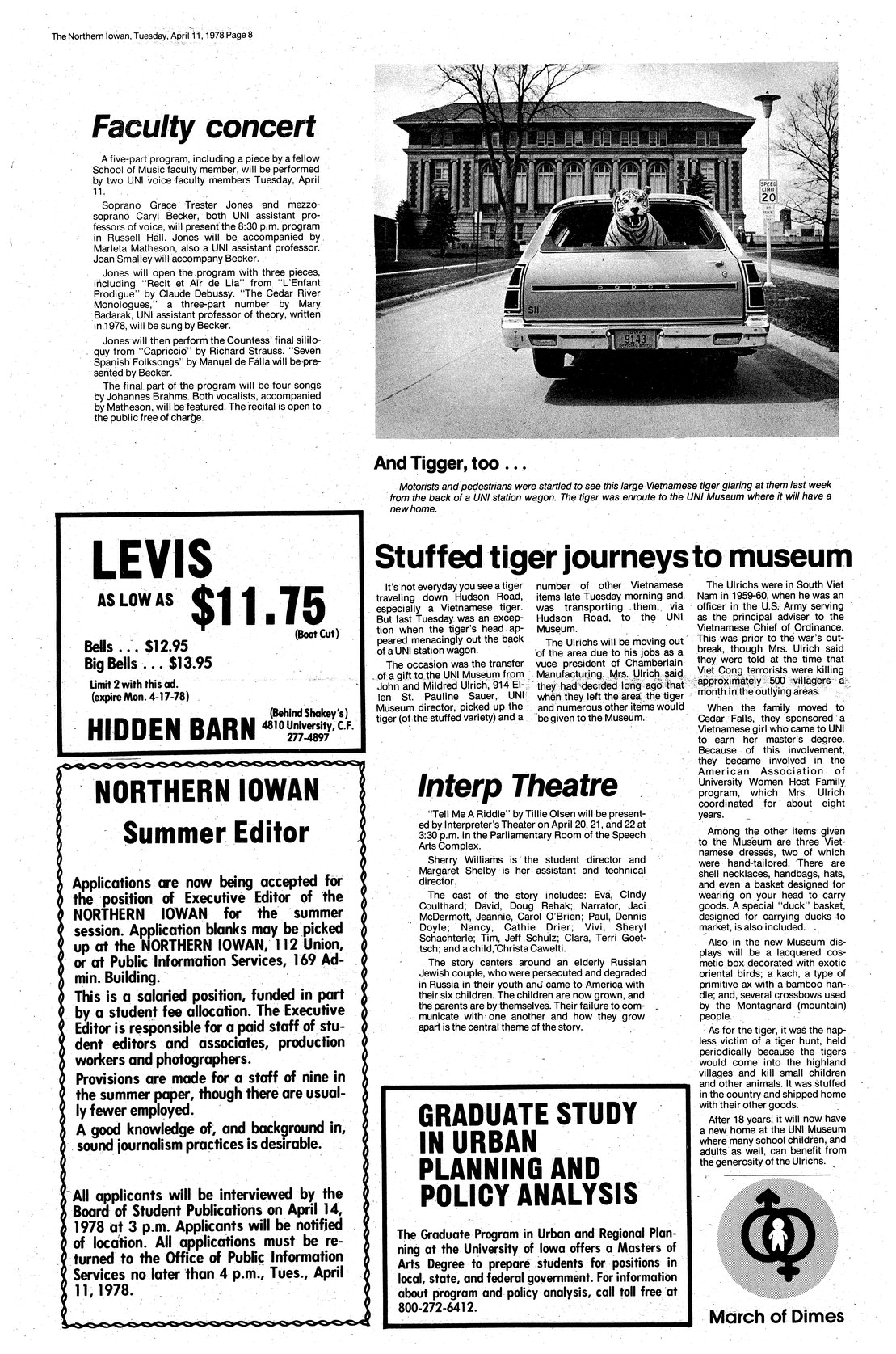 | Stuffed tiger journeys to museum | UNI Museum receives items from Viet Nam from John and Mildred Ulrich. |