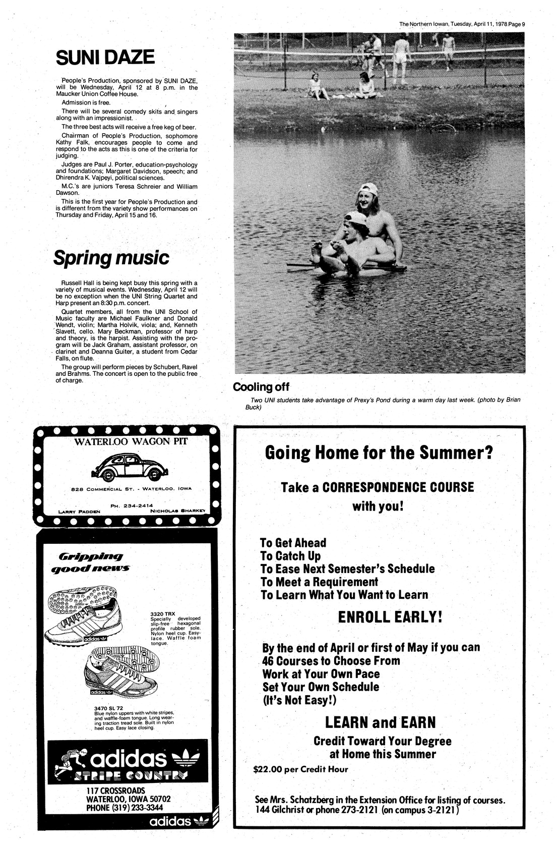 Cooling off Two UNI students take advantage of Prexy's Pond during a warm day last week.