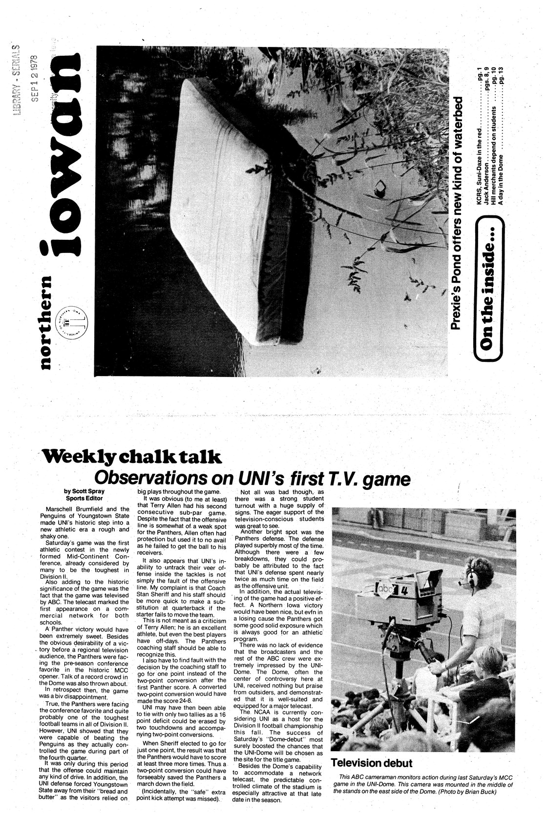 Observations on UNI's first T.V. game Discussion of the UNI versus Youngstown State game; photo.