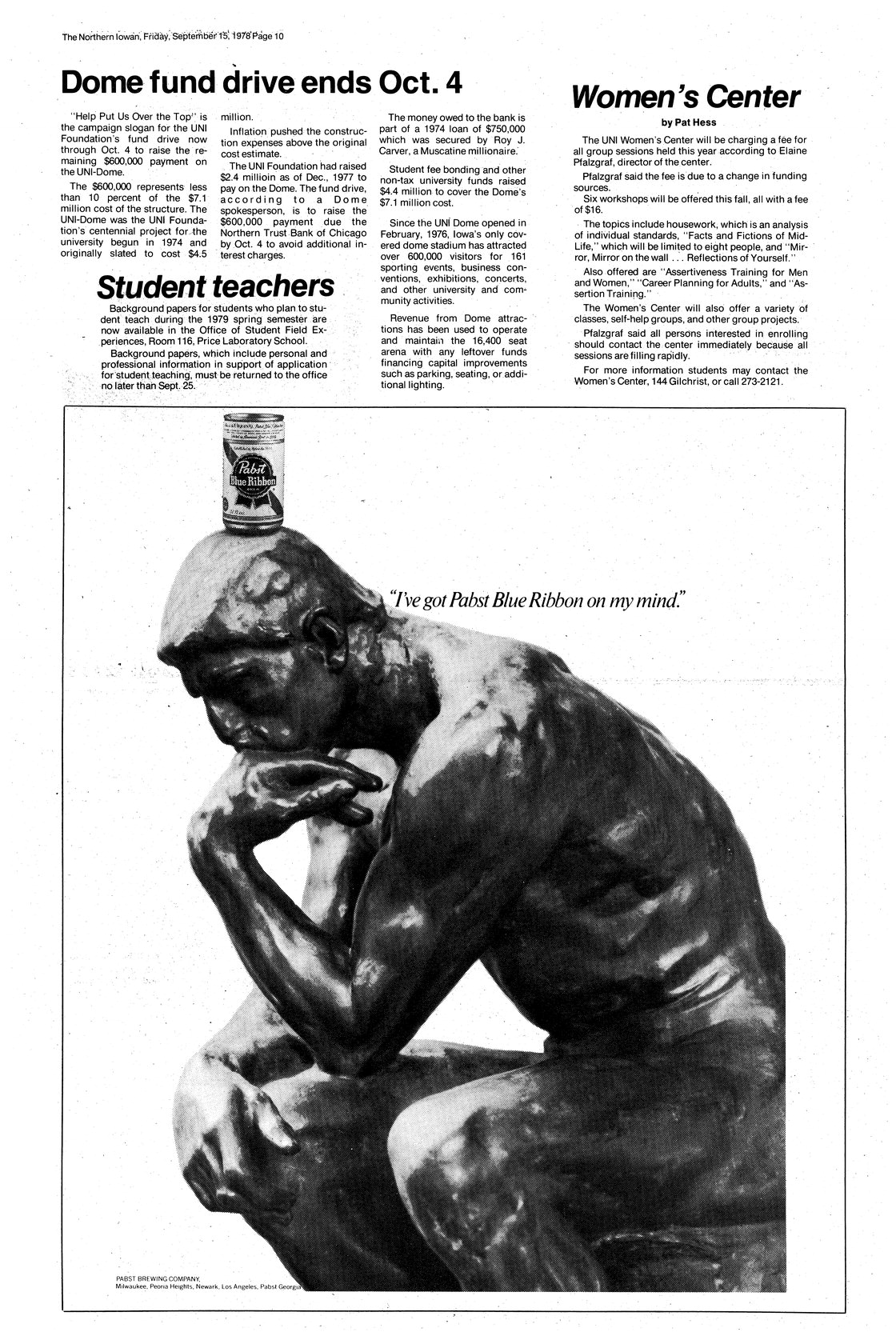 | Women's Center | Schedule of sessions scheduled; will charge a fee this year. |
