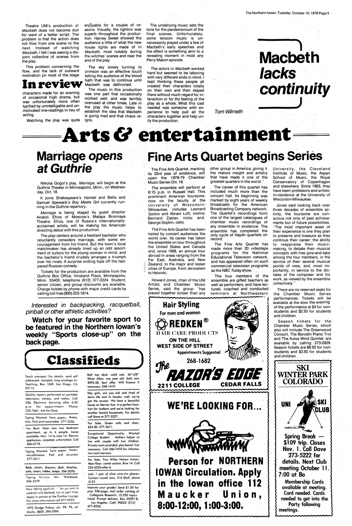 Macbeth lacks continuity A review of Theatre UNI's production of 'Macbeth'.