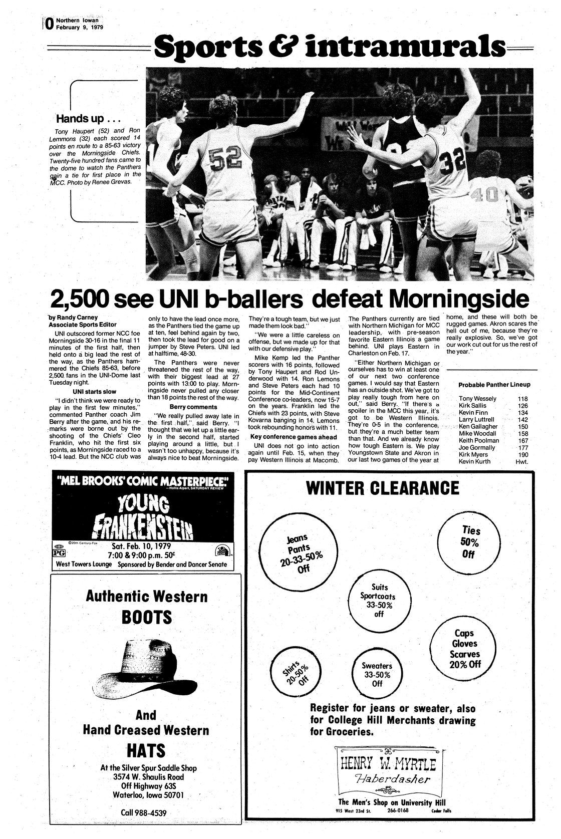 | 2,500 see UNI b-ballers defeat Morningside | UNI defeated Morningside in a game played Tuesday night; the score was 85-63. |