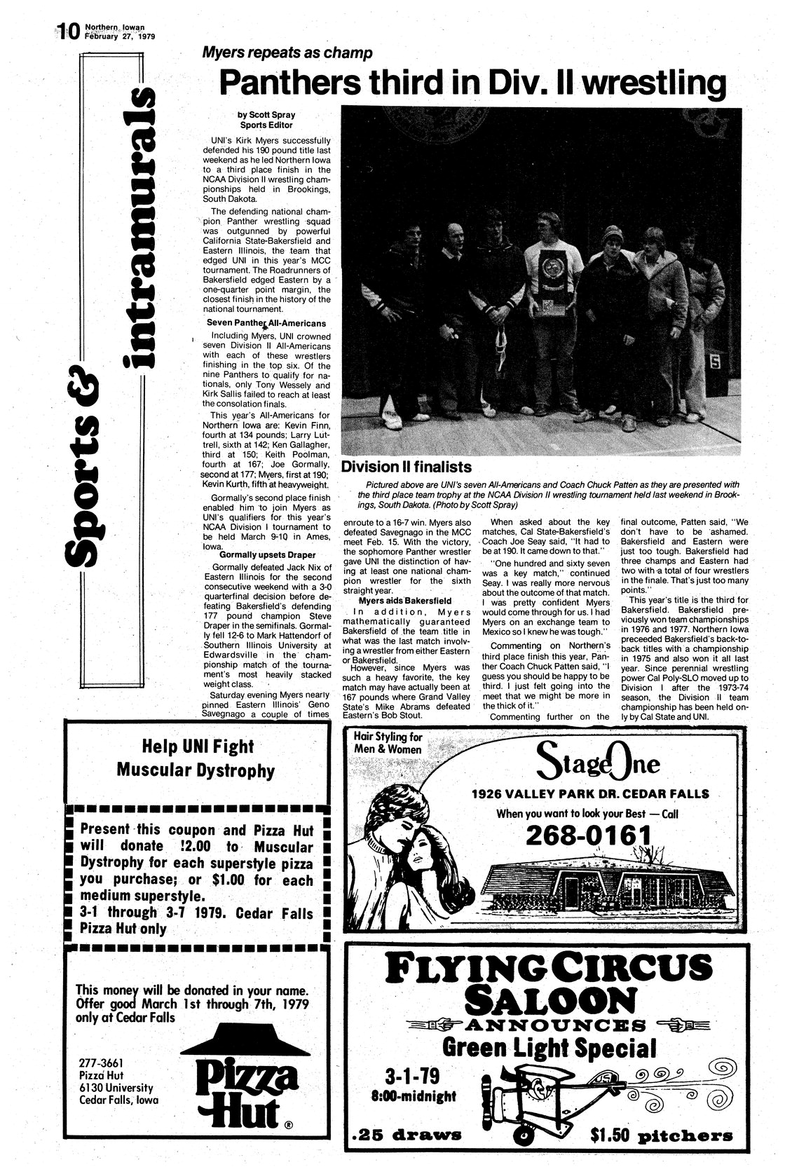 Panthers third in Division II wrestling; Myers repeats as champ The UNI wrestling team took third place at the Division II NCAA tournament. Kirk Myers took home an individual championship.