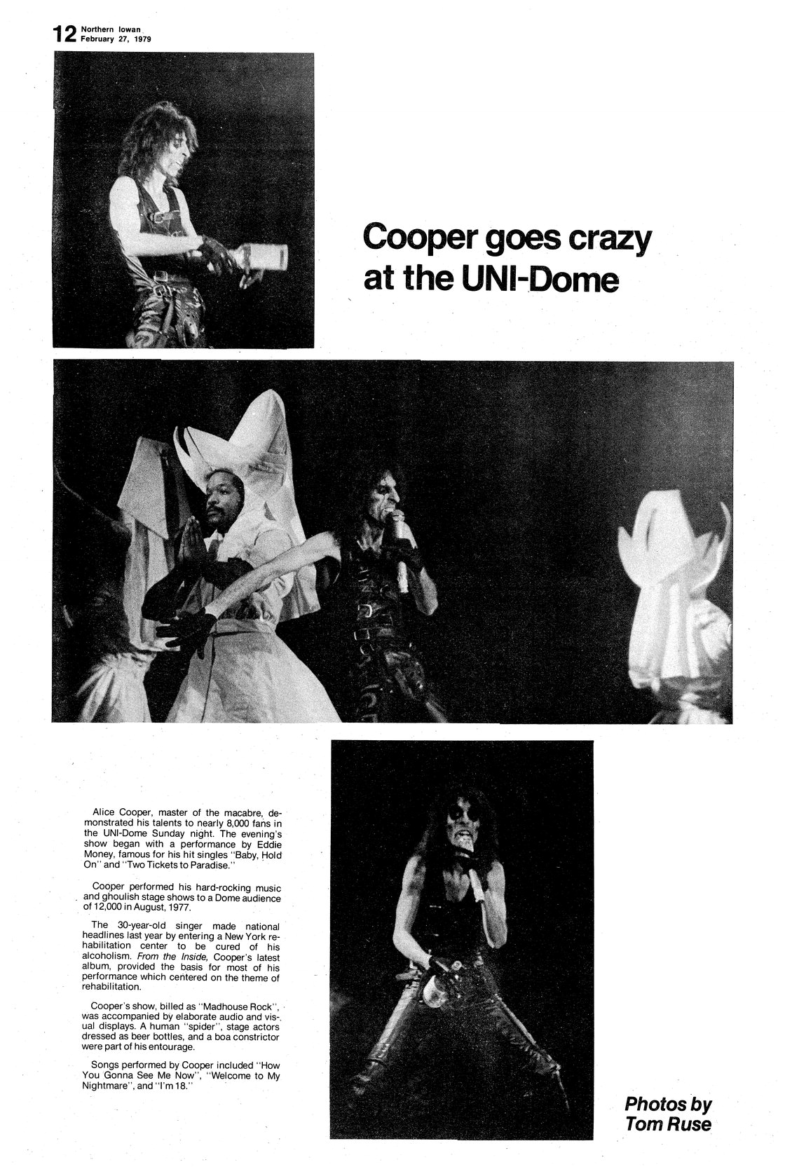 | Cooper goes crazy at the UNI-Dome | Alice Cooper performed for eight thousand people in the UNI-Dome Sunday night; photo. |