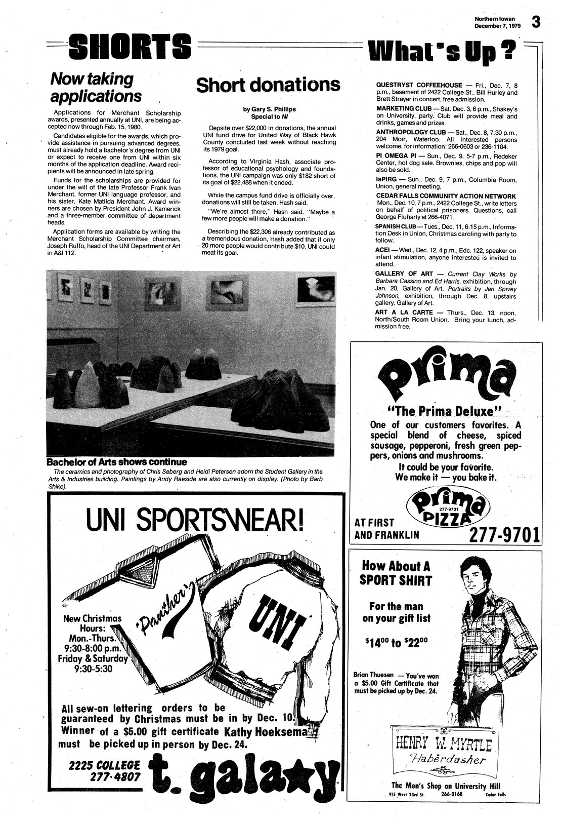 | Bachelor of Arts shows continue | Chris Seberg and Heidi Petersen have ceramics and photography on display at the student gallery; photo. |