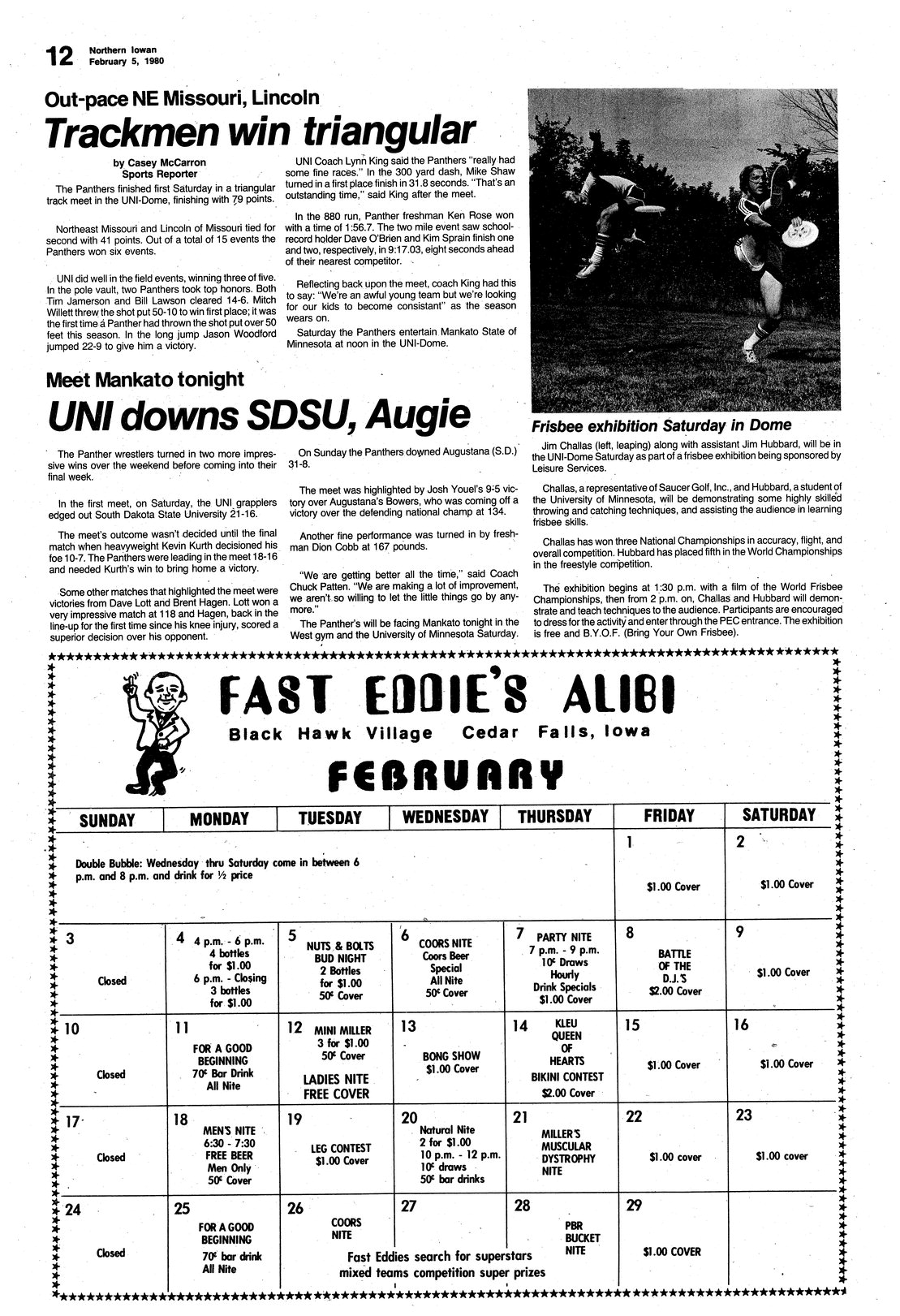 | Trackmen win triangular; out-pace NE Missouri, Lincoln | UNI won the triangular meet with Northeast Missouri and Lincoln of Missouri. |