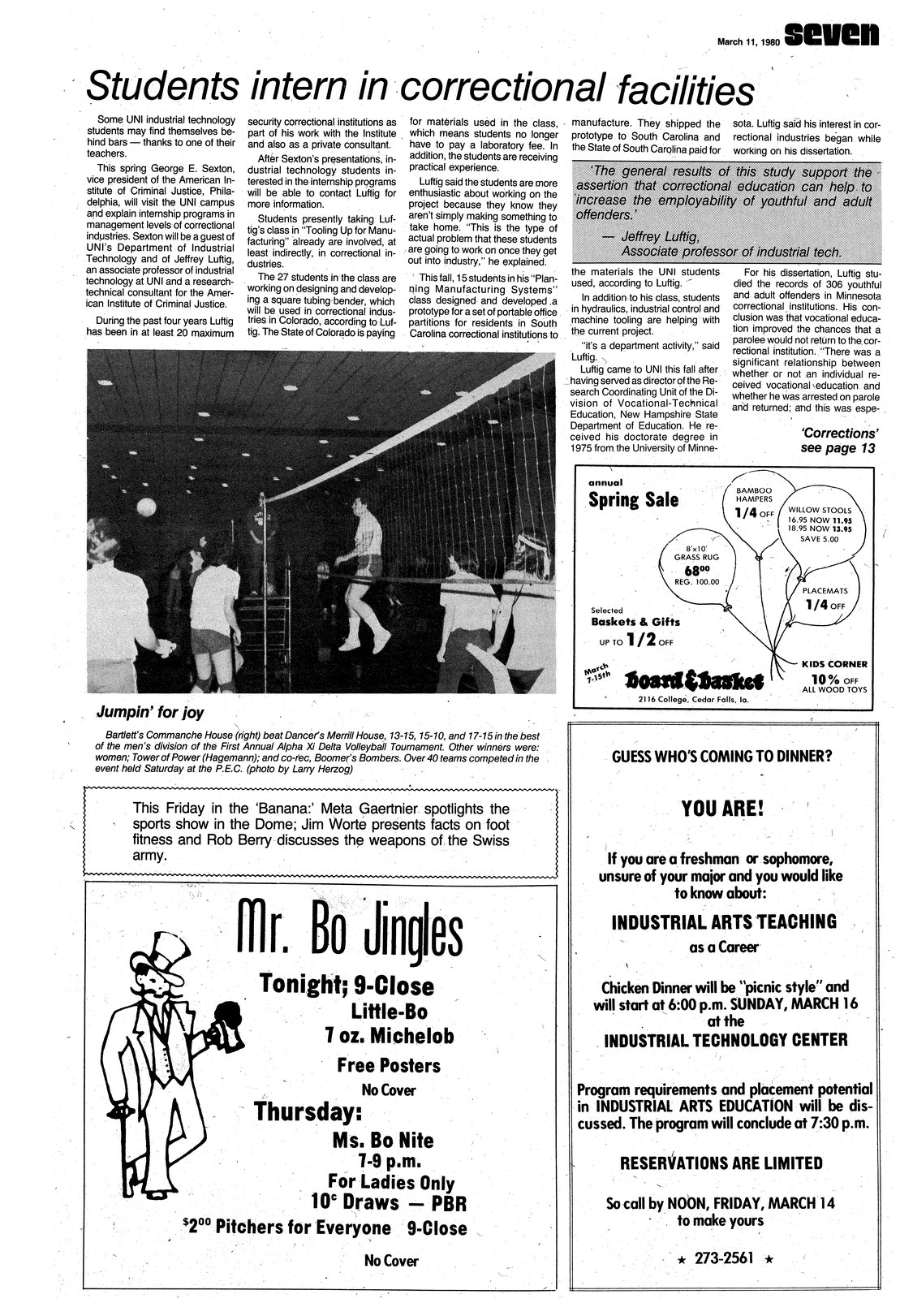 | Students intern in correctional facilities | George E. Sexton will be a guest at UNI this spring and will discuss internship programs at correctional facilities. |