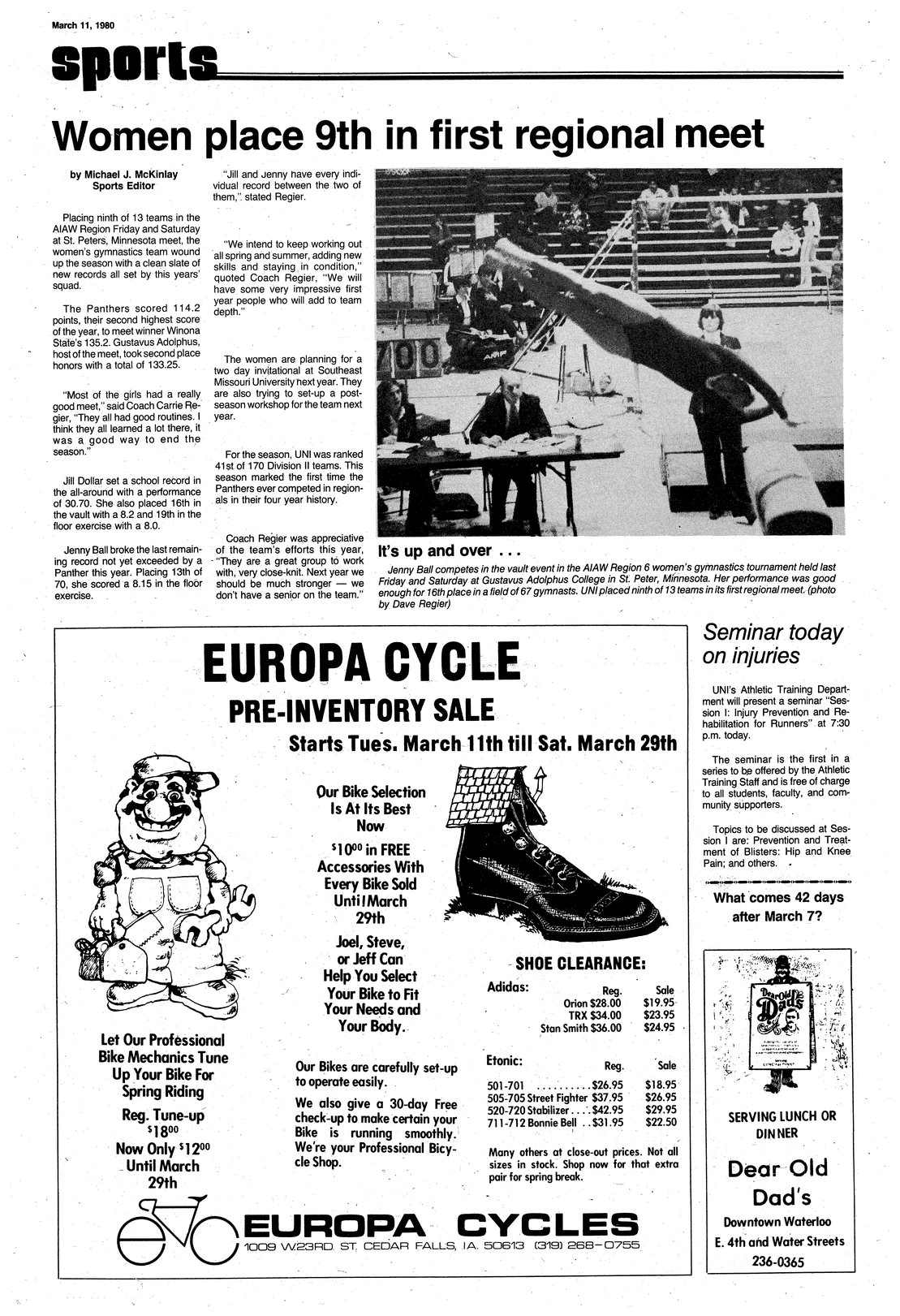 | Women place 9th in first regional meet | UNI placed ninth out of thirteen teams in the AIAW Region; photo. |