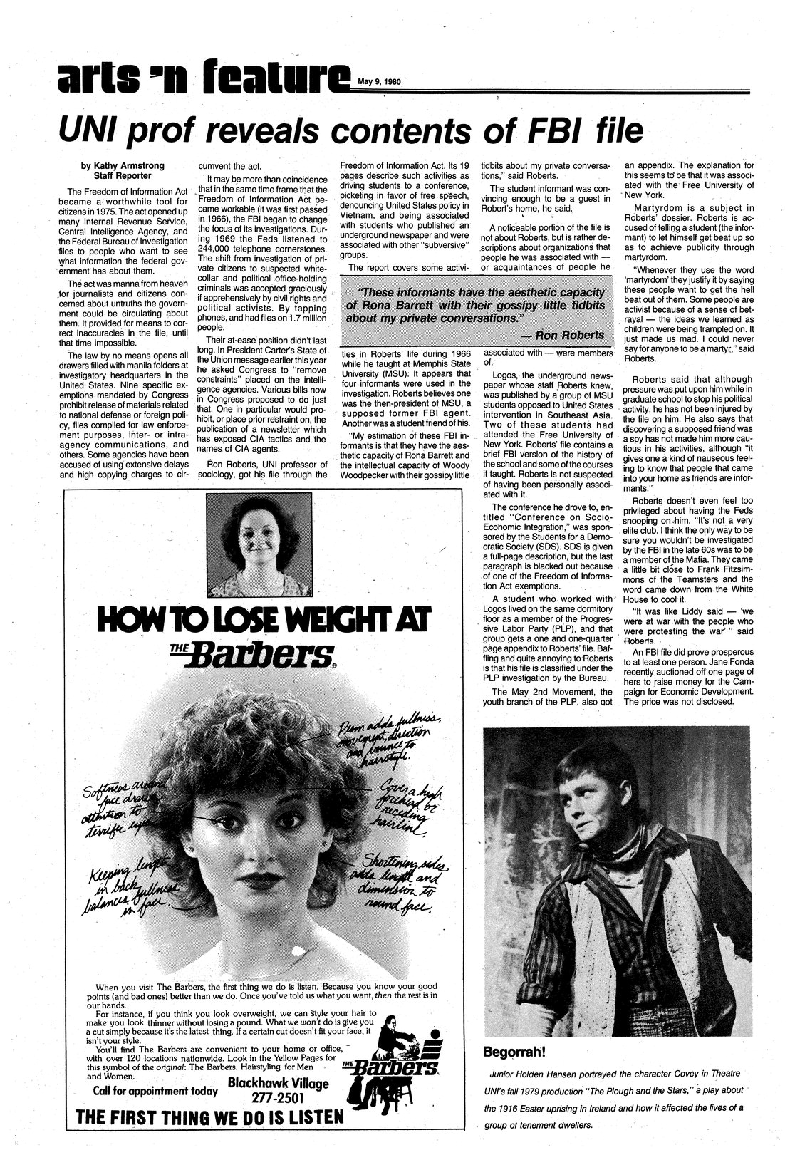 | UNI prof reveals contents of FBI file | Ronald Roberts discusses the contents of his FBI file, released under the Freedom of Information Act. |