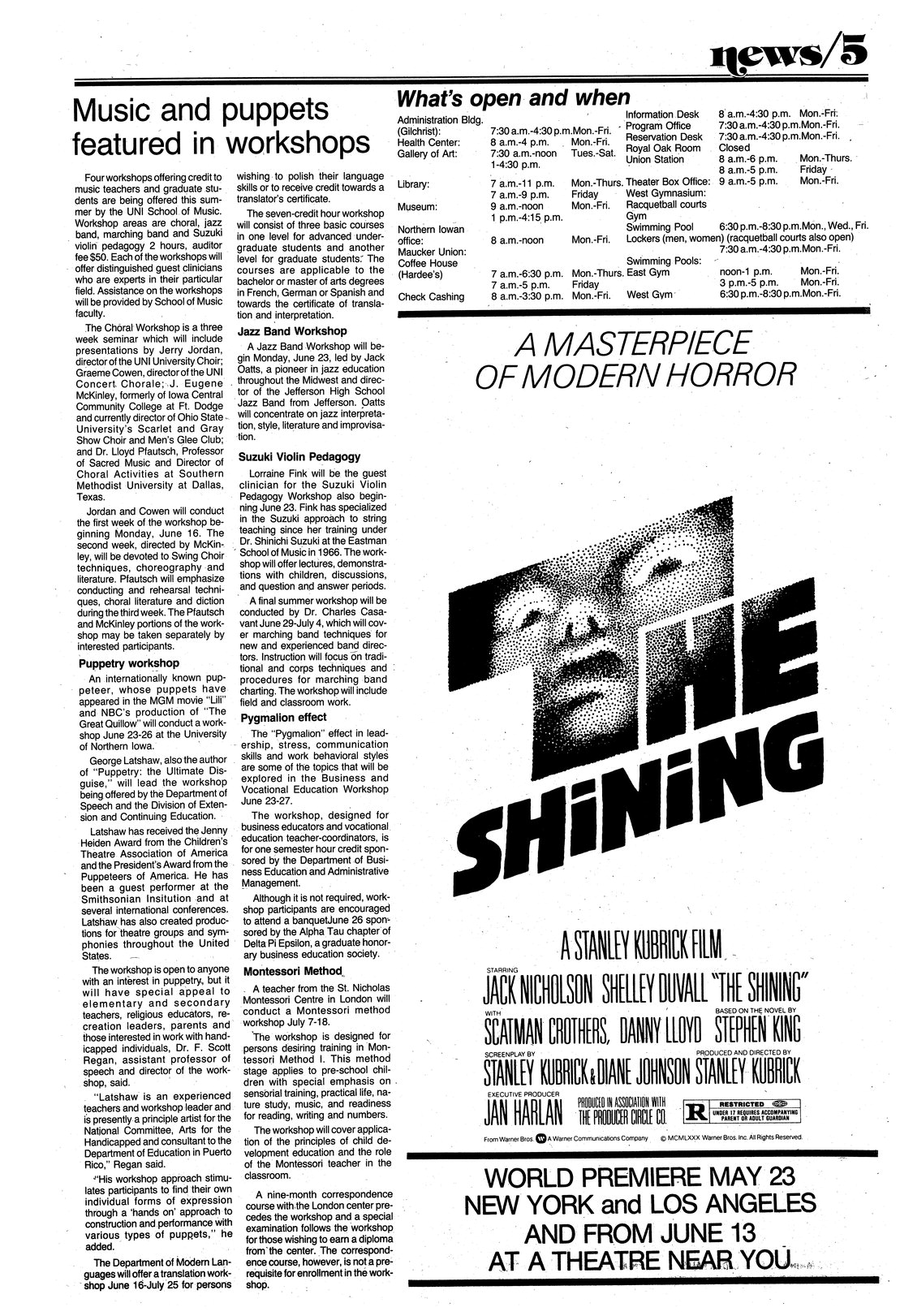 | Music and puppets featured in workshops | Workshops, including some that give college credit, will be offered this summer. |