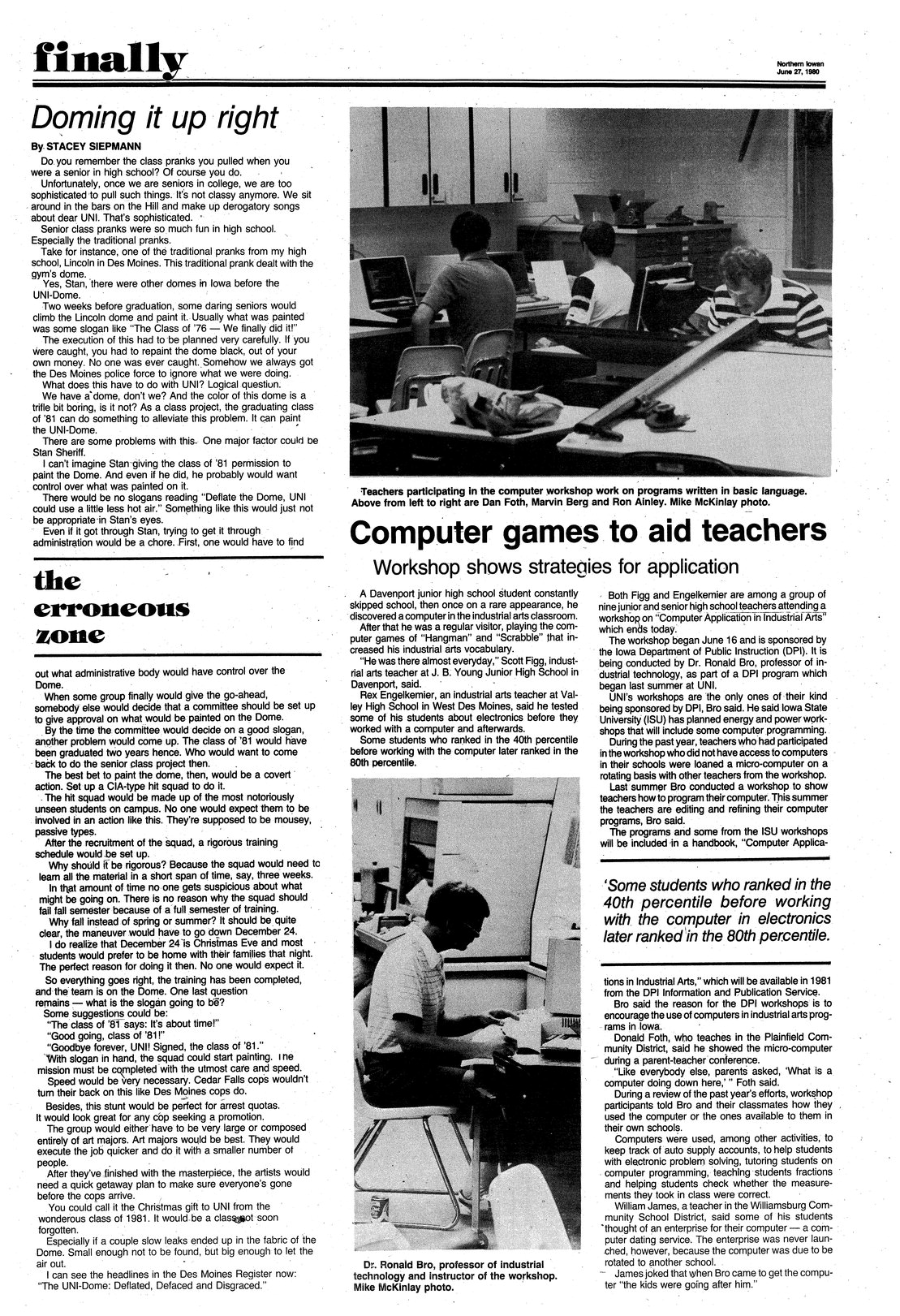 | Computer games to aid teachers | The Department of Industrial Technology conducted a workshop on computer applications in industrial arts; photo. |
